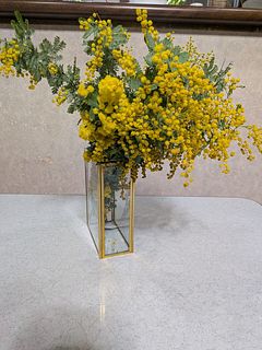 初めての注文です.毎年楽しみにしているミモザ、かわいい黄色の可愛い子がいっぱいついていました.合わせておすすめの花瓶も購入.期待通りで気持ちのいい買い物でした。またお願いします。