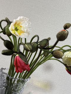 ポピーは俯きがち。紙に巻いて水揚げを行ってみて。