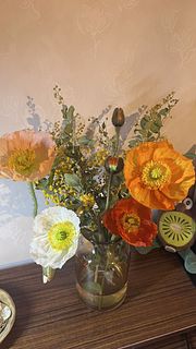 ミモザのふんわりとした質感と、紙風船のようなポピーが魅力的🌼