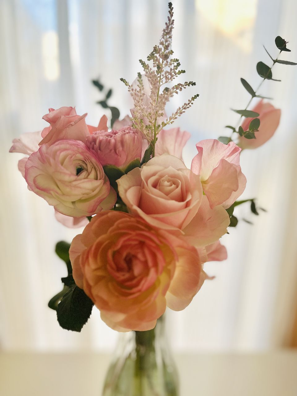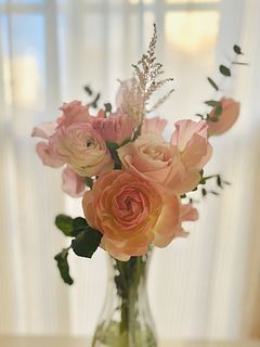 やさしいピンクのグラデーションとバラやスイトピーの良い香りで、とても幸せな気持ちになりました!