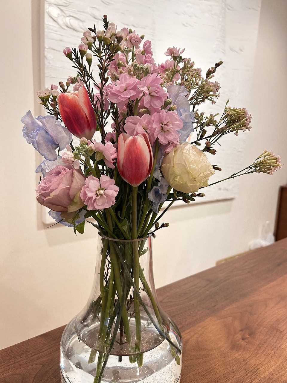 スカイブルーのスイートピーがアクセント🩵