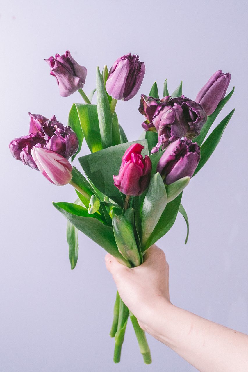 八重咲き、フリンジ咲き、パーロット咲き、クラウン咲き。表情のちがうピンクのチューリップを、ぎゅっと8本集めました🌷