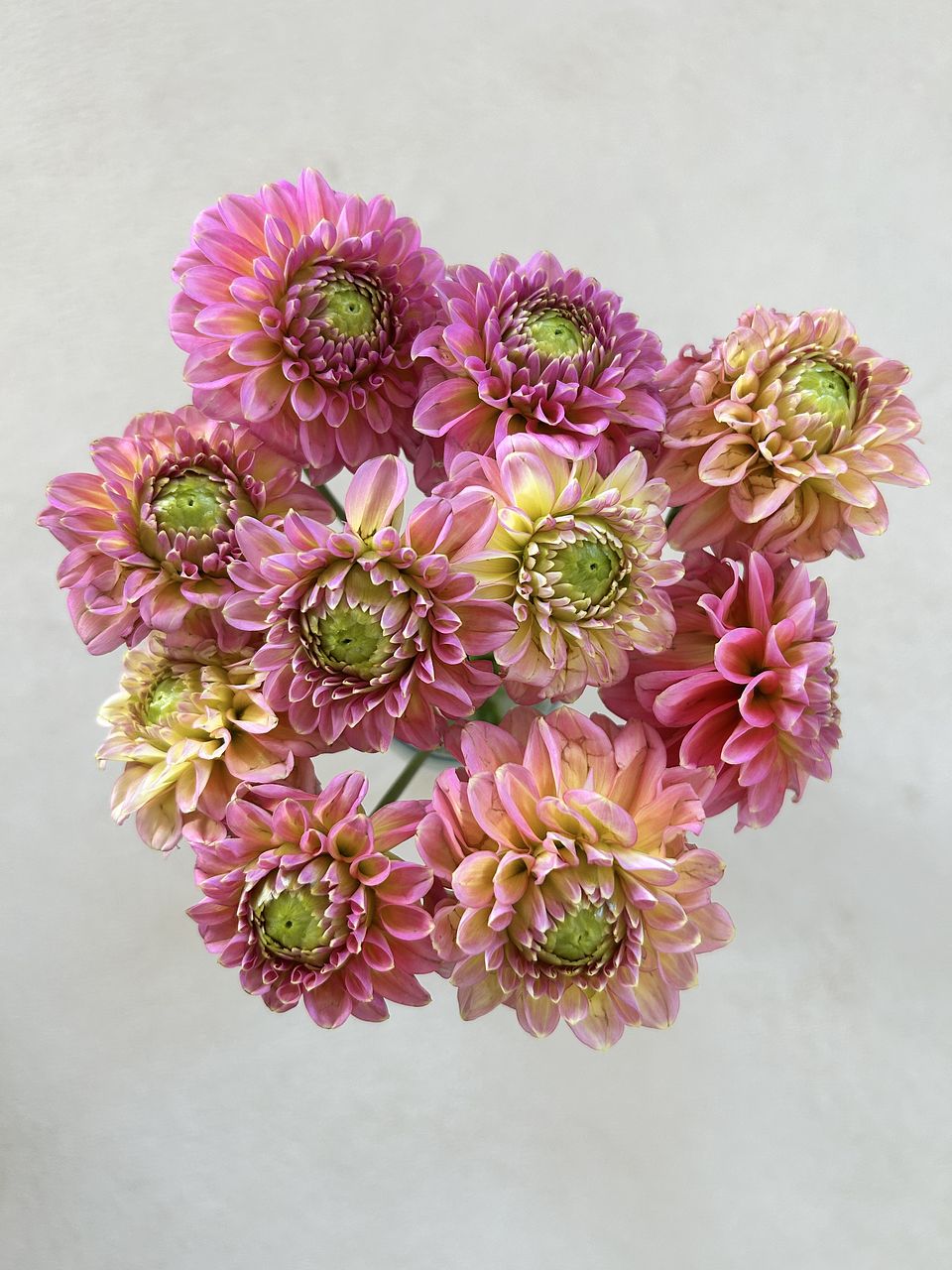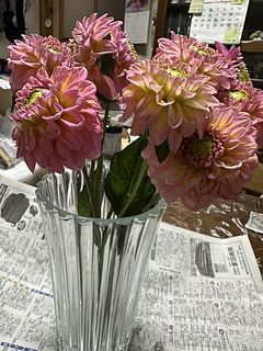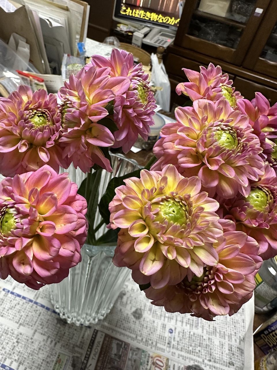 文字通りの桃色が可愛いダリアでした❣️ 濃いめと薄めとミックスされていて😍 ただ、茎がとても細いので扱うのが少し大変🤏 本数がもっとあったらいいのに、と思いました