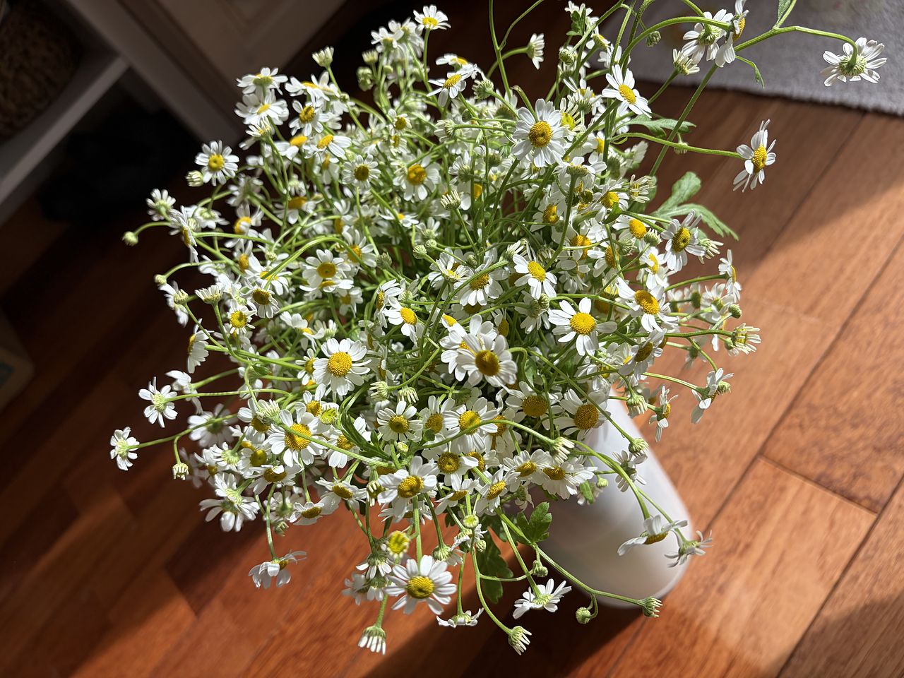 ふわふわゆれるマトリカリア「シングルペグモ」をたっぷりと束ねました。