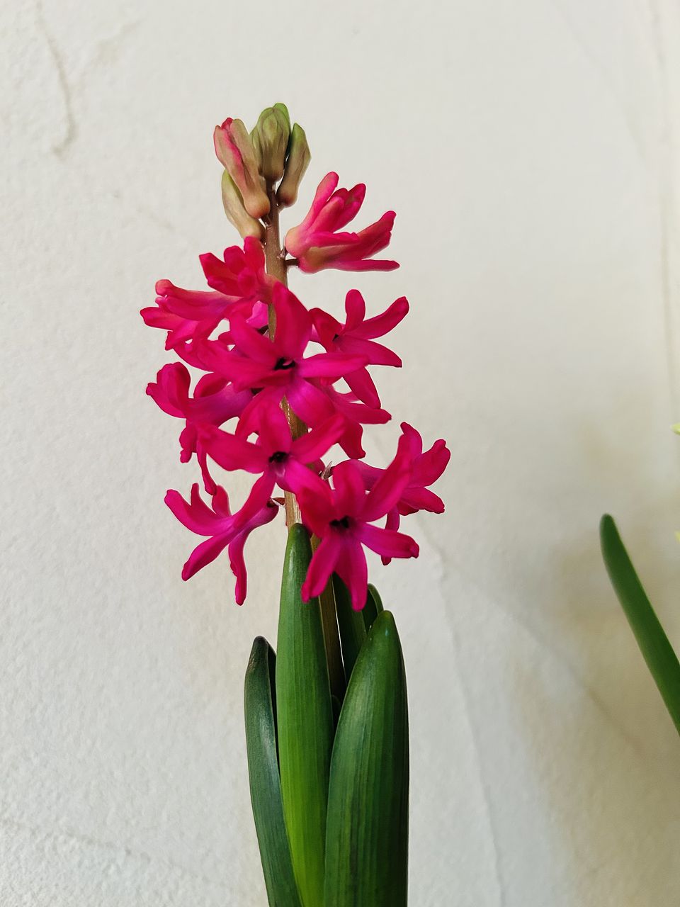 蕾はまたまだ小さいですが、しっかりしていてこれから何色のお鼻が咲くのかとても楽しみです。 長く楽しめるヒヤシンス大切に育てます。