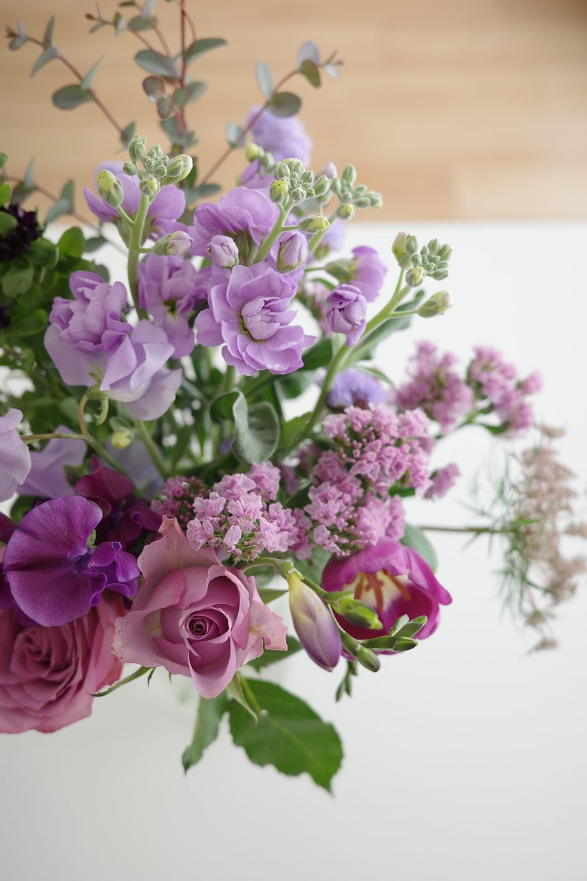 パープルの色がお花によって違って凄く綺麗です。ボリュームもあり華やかです。