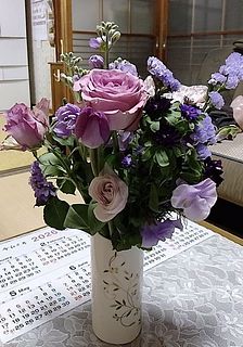 アメジストにかけた紫色の組み合わせがとても綺麗。上手く活けるのがチャット難しかったですが。