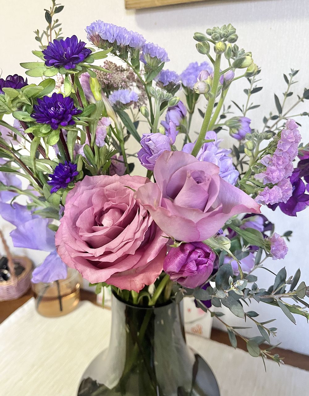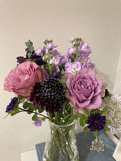 母の好きなパープルの花束。まさにアメジストですね💜可愛らしさの中に品もあってめちゃくちゃ素敵な花束でした。