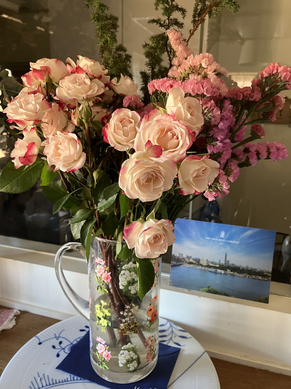 この季節にぴったりのいちごミルクみたいな 色合いでした!以前こちらで求めたスターチスと 一緒に!