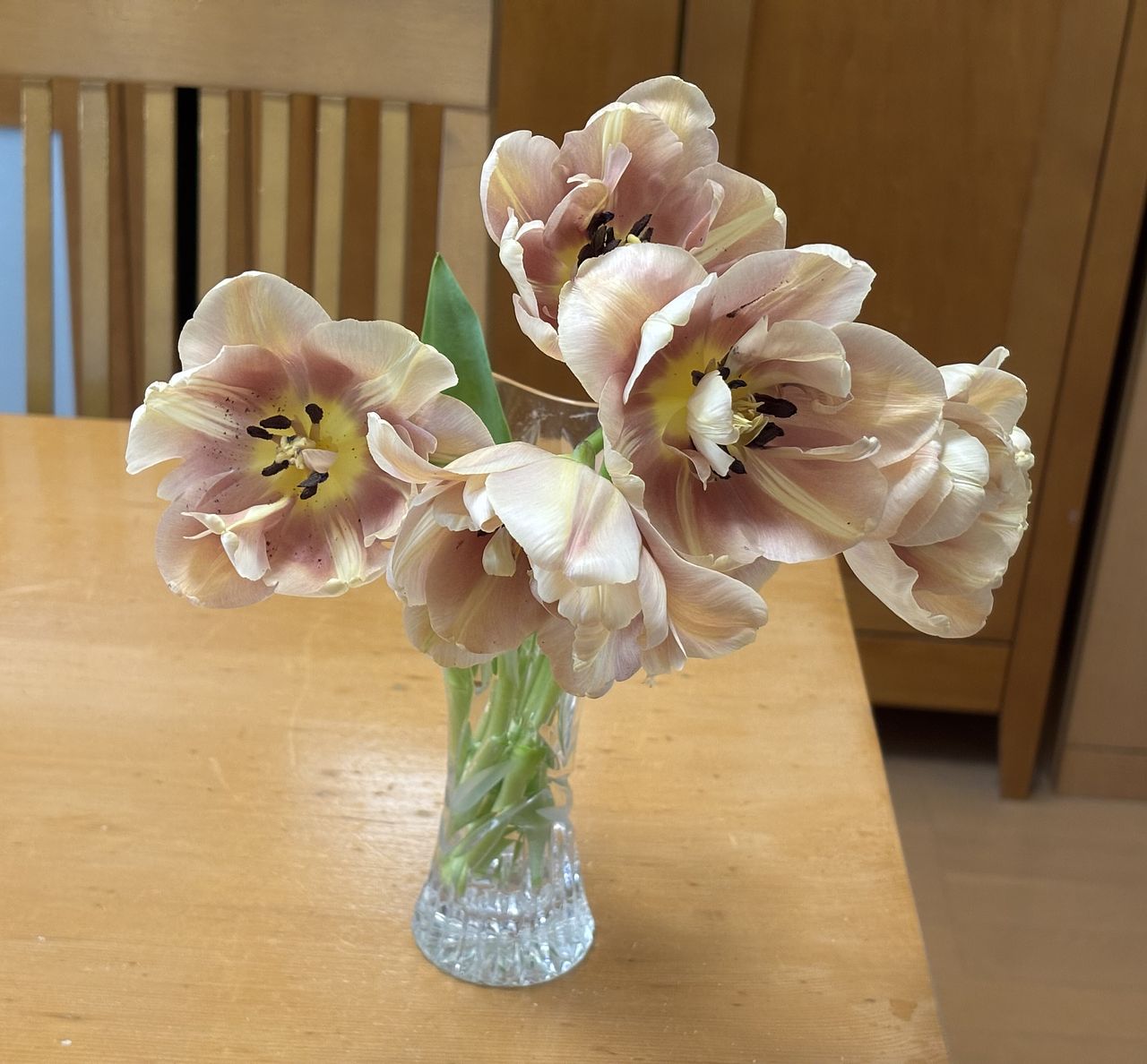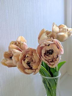 アンティーク調のオトナっぽい色合いのチューリップです✨ピンクベージュのような柔らかい雰囲気が気に入っています♡ 涼しいところに飾って日持ちしてくれたらと思います。 ありがとうございました♡