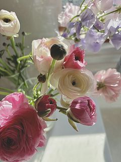 ピンク系のラナンキュラスが可愛いです。到着した時は満開ではなかったのでボリューム少ないかなと感じましたが、開花するにつれてボリュームが出てきました。見たことがない品種のものも入っていて楽しいです。