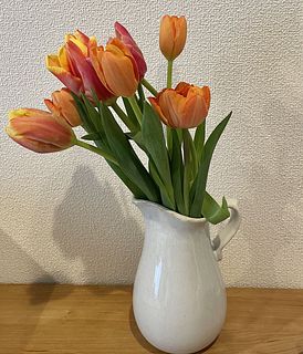 色が可愛くて明るい気持ちになります🔆 もう少しつぼみの状態で届くかと思ったので、日持ちが心配です。涼しいところに置いて様子を見ようと思います!セットで購入した花器はサイズがぴったりで使いやすいです。
