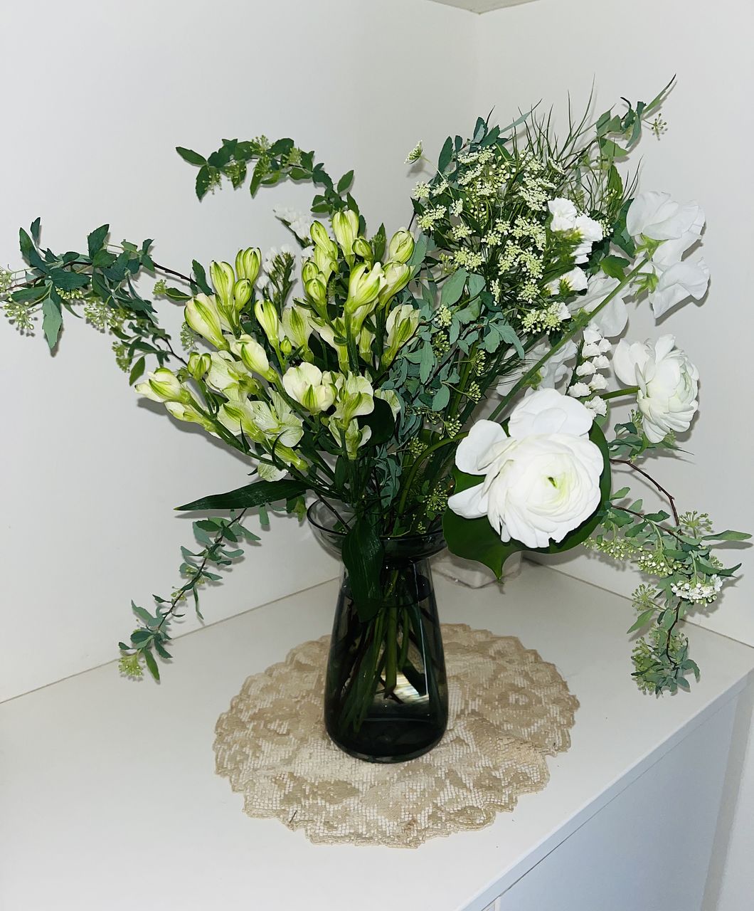 白と緑のバランスがめちゃくちゃ可愛かったです お花もたっぷりだったので分割して飾ってます