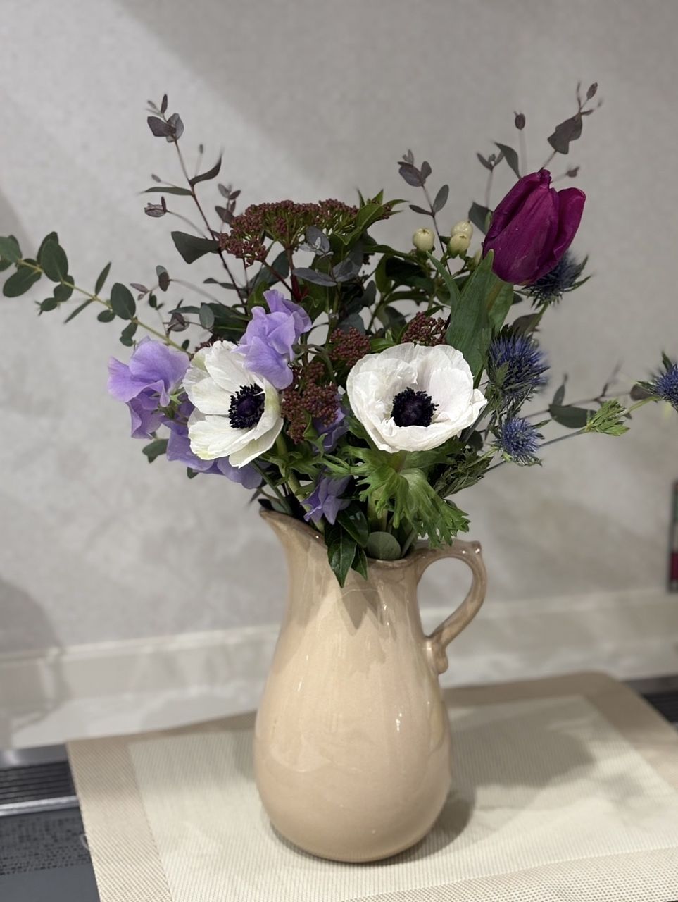 アネモネを主役に、春のやさしさを束ねたブーケ「Spring beauty Sleep」🦋🫧軽やかなグリーンとともに、うたた寝するような穏やかな時間を感じる花束です。