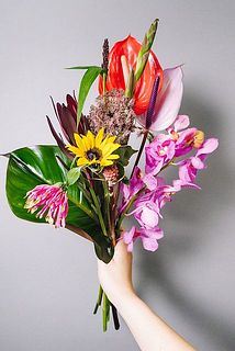 つやつやアンスリウムをメインにスパイシーなブーケをご用意😍