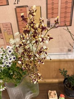 オンシジウムのイメージが変わる👀ボルドーのシックな小花がおしゃれな「シャーリーベイビー」をお届け。なかなか出回らない希少な品種で、チョコレートのような甘い香りも特徴です🍫