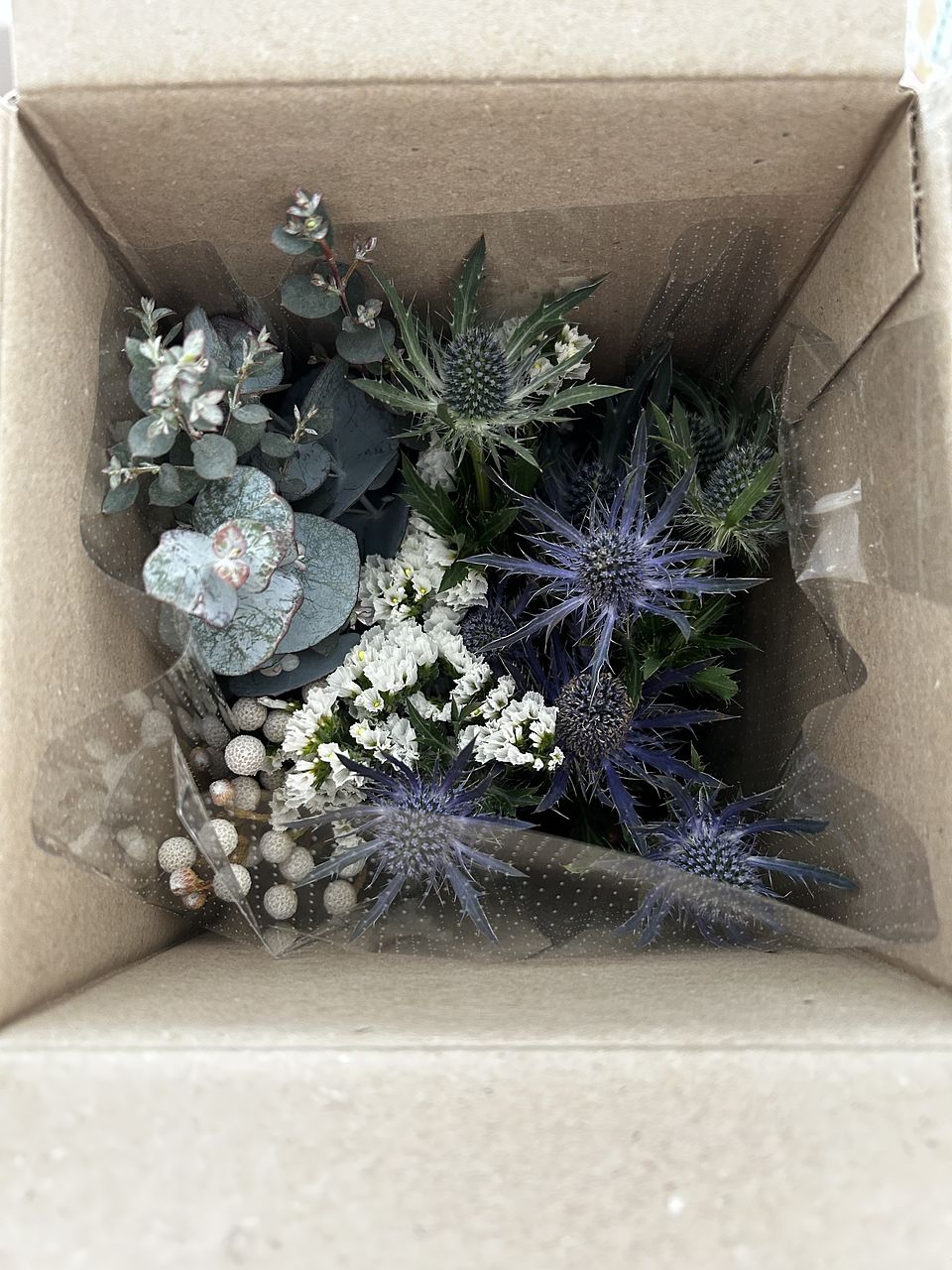 初めてさんに大人気!エリンジウムとを主役に。ドライになりやすい旬な草花を合わせました🍃お世話もラクラク、そのままドライにも。