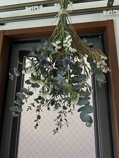 爽やかな香りがして、とっても癒されます❤️ グリーンのスワッグやっぱりいいですね! せっかくなので、最初の何日間かは水をあげて飾ろうと思います!