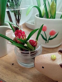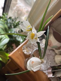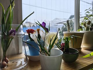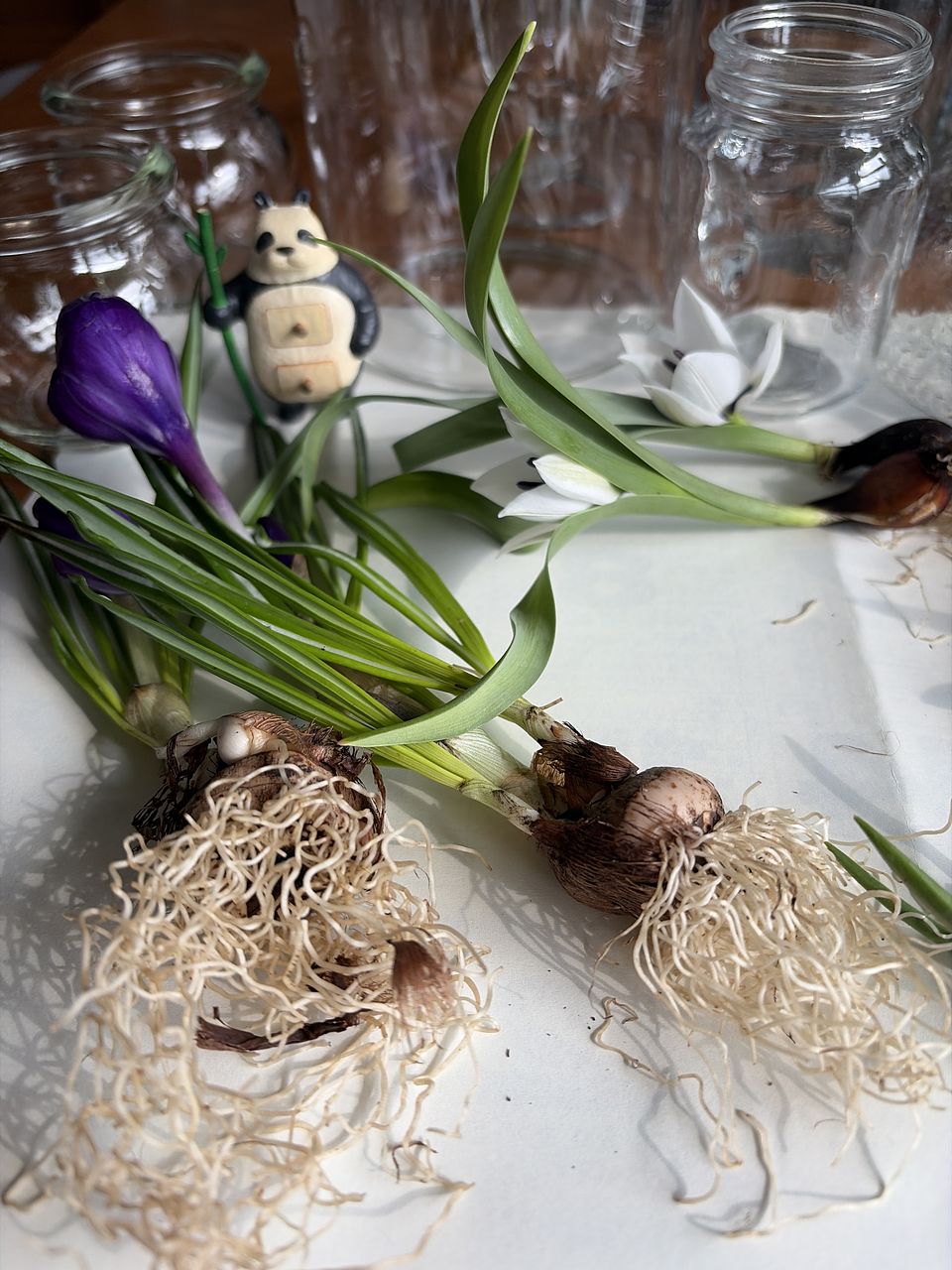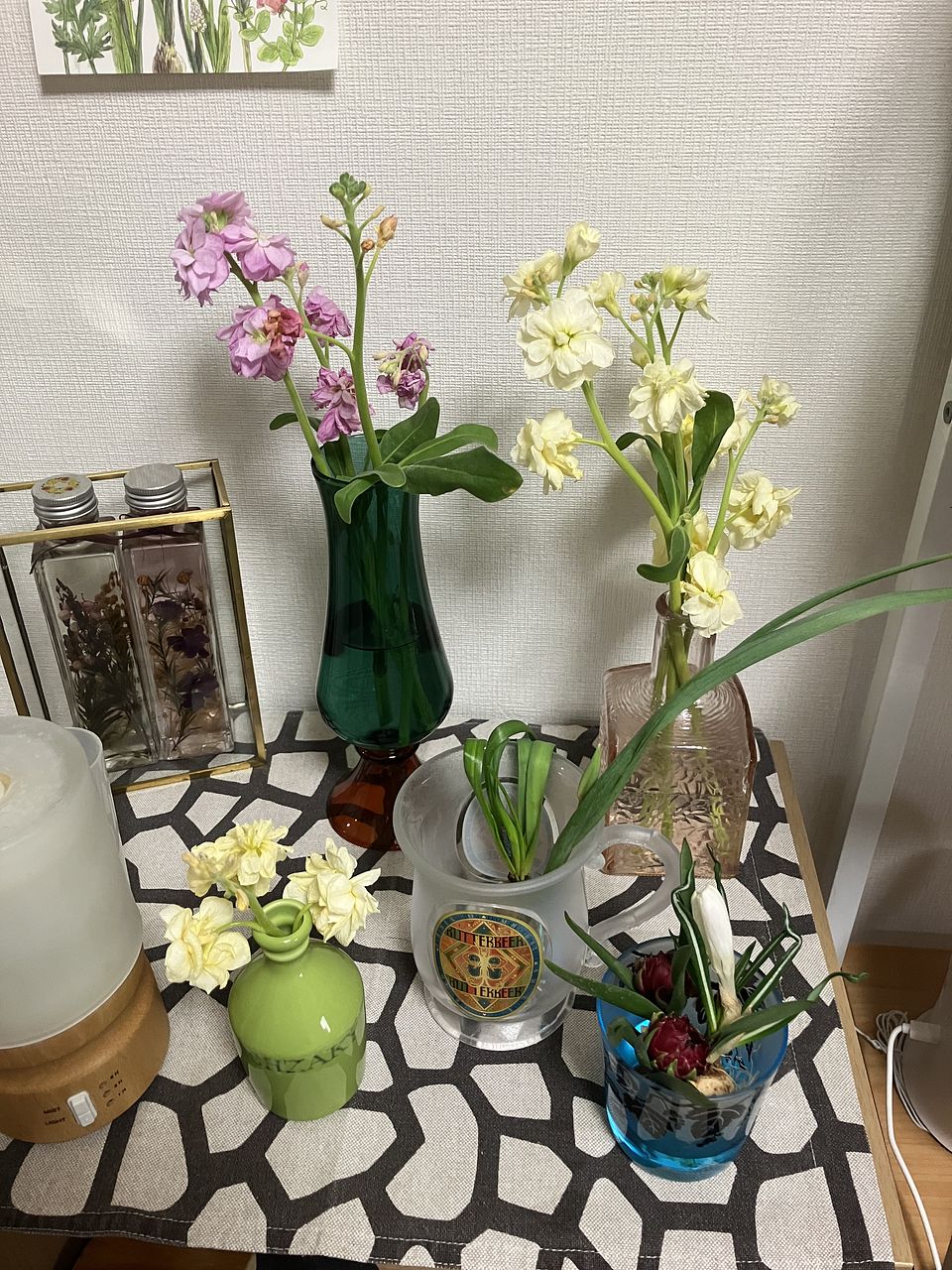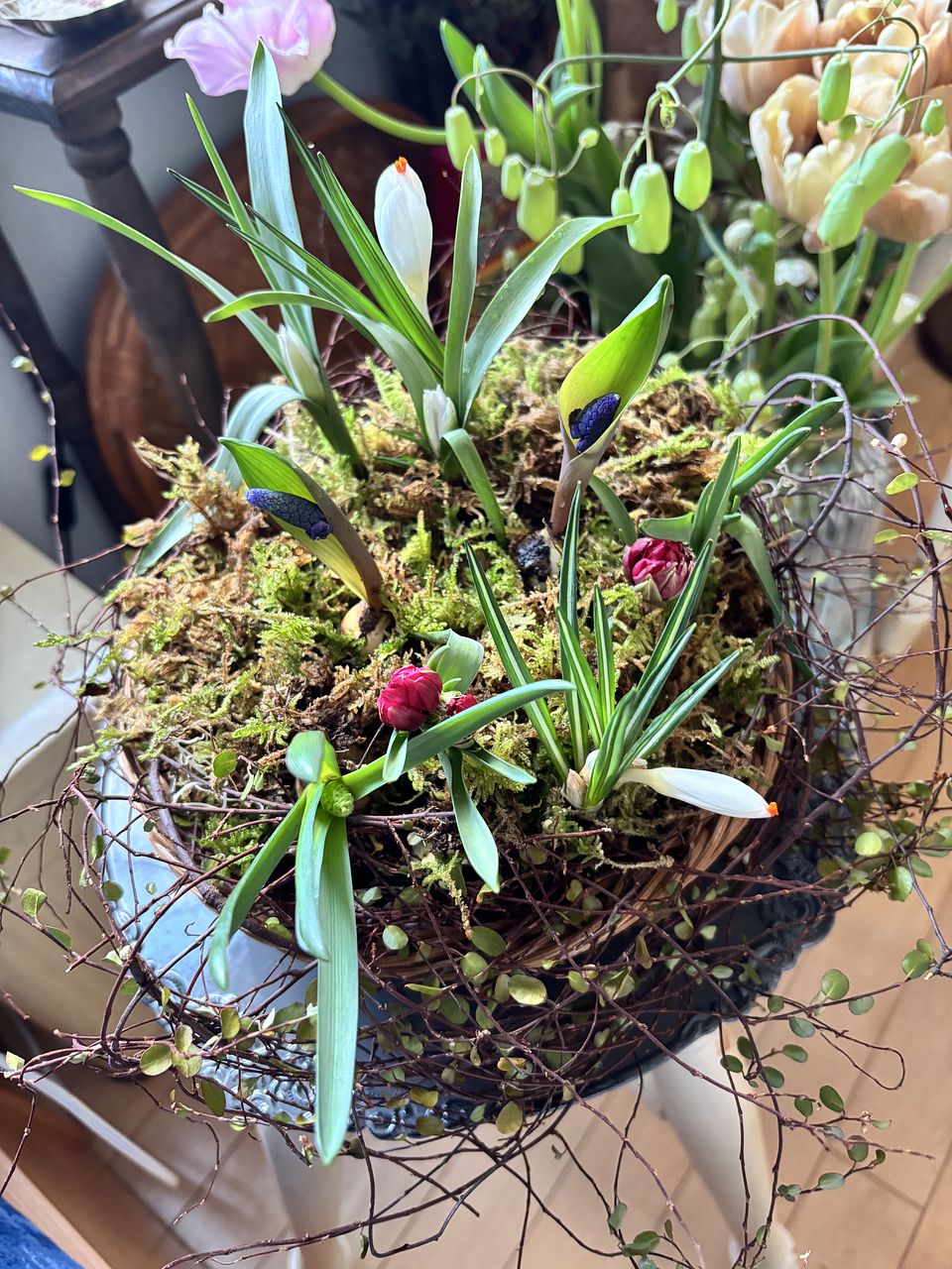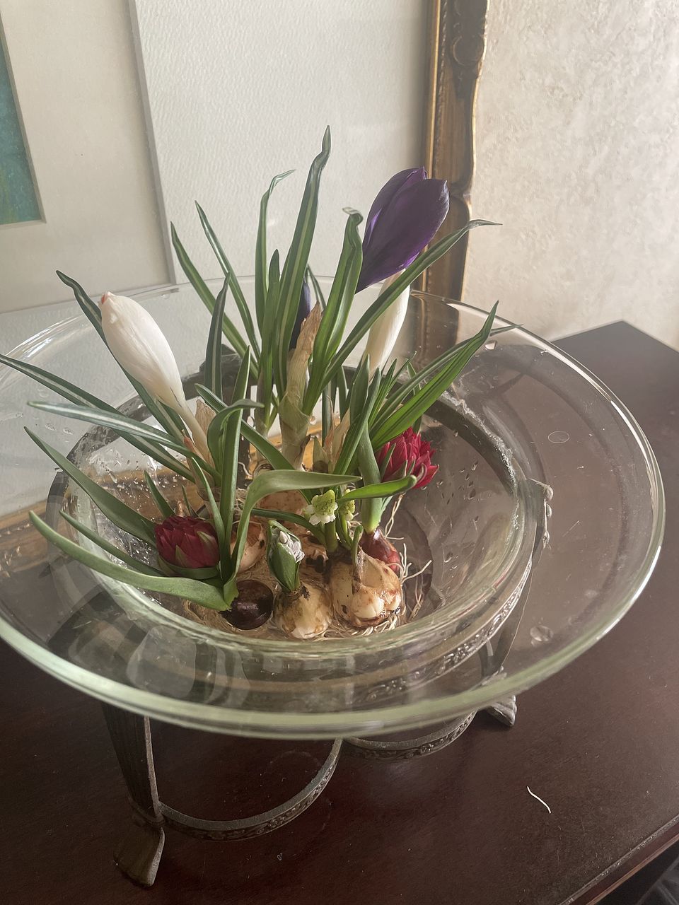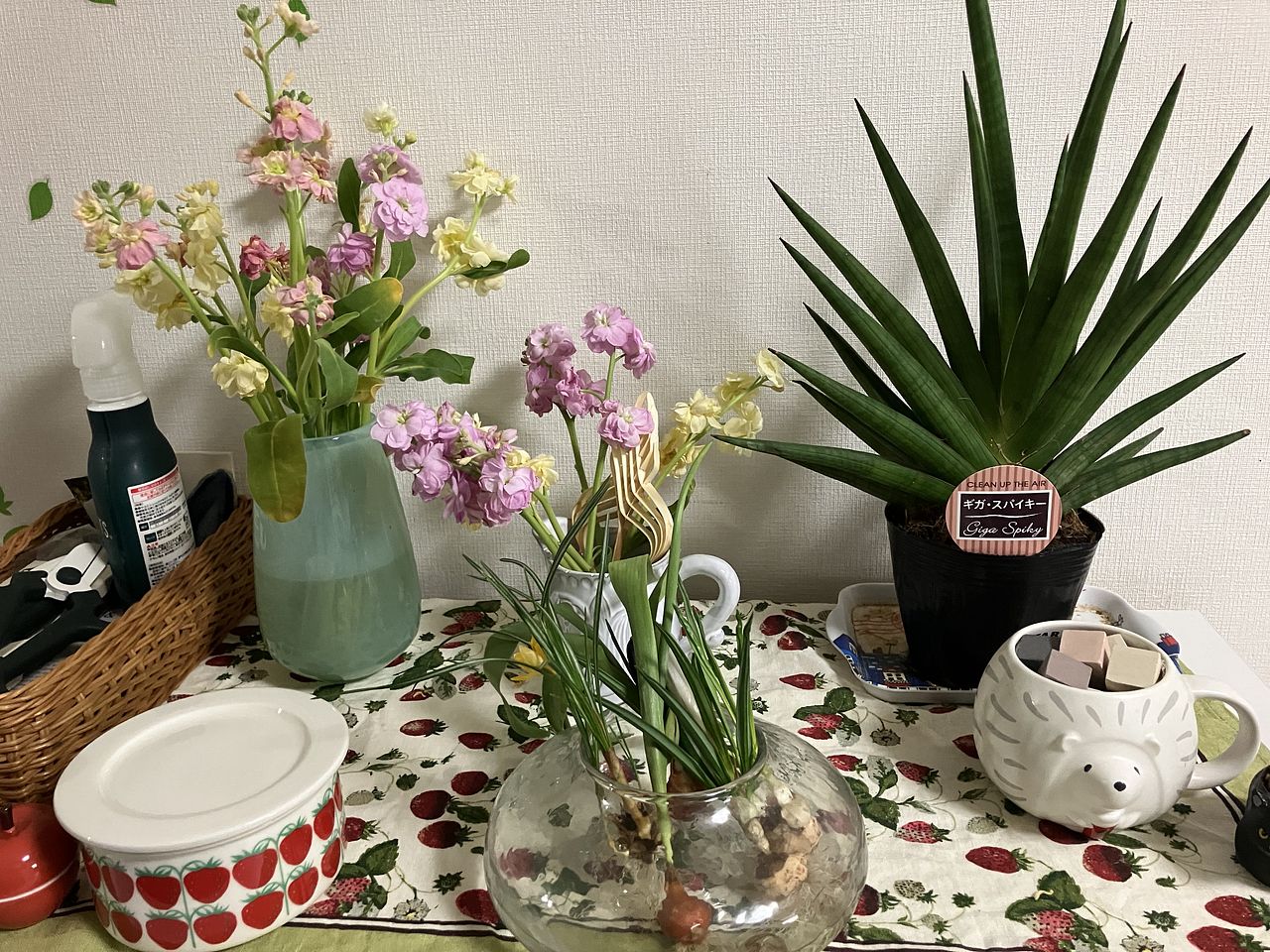 水仙、青いムスカリは早々に咲き始め、水仙は1週間ほど楽しめました。青ムスカリはきれいに咲き続けています。アイリスのような花が2つありましたが、花開く前に枯れてしまいました。その他、3個ほど根が腐ったり、葉が黄変してだめになりました。