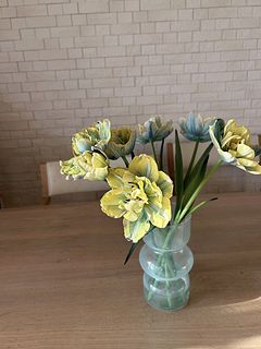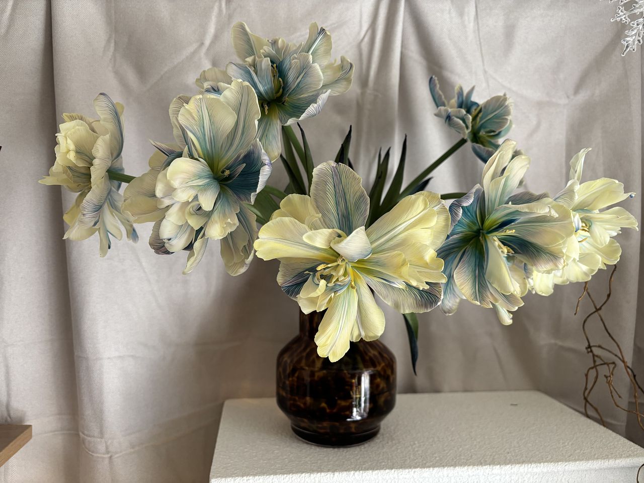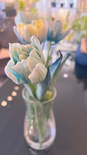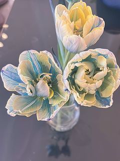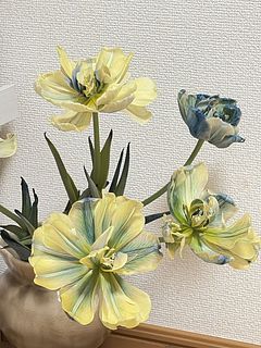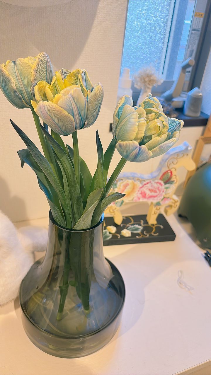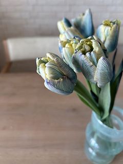 とにかく珍しいカラーのチューリップに惹かれて購入🩵届いたらイメージ通り、葉っぱまでブルーがかった素敵なチューリップ!でも日持ちしないのかチューリップのデメリット…暖かい部屋ですぐに開いてもうダメかと思いきや!花屋で買うより新鮮なのでその後の持ちのよいこと◎花びらは最高まで散らずにゆっくり枯れていきオートクチュールのドレスの様でした😊
