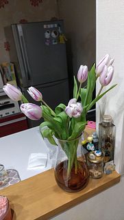思ったより小ぶりかなと思いましたが飾ってみたら可愛いです。ここに黄色とかビタミンカラーのチューリップ追加しても可愛いかなと思います🧡💛