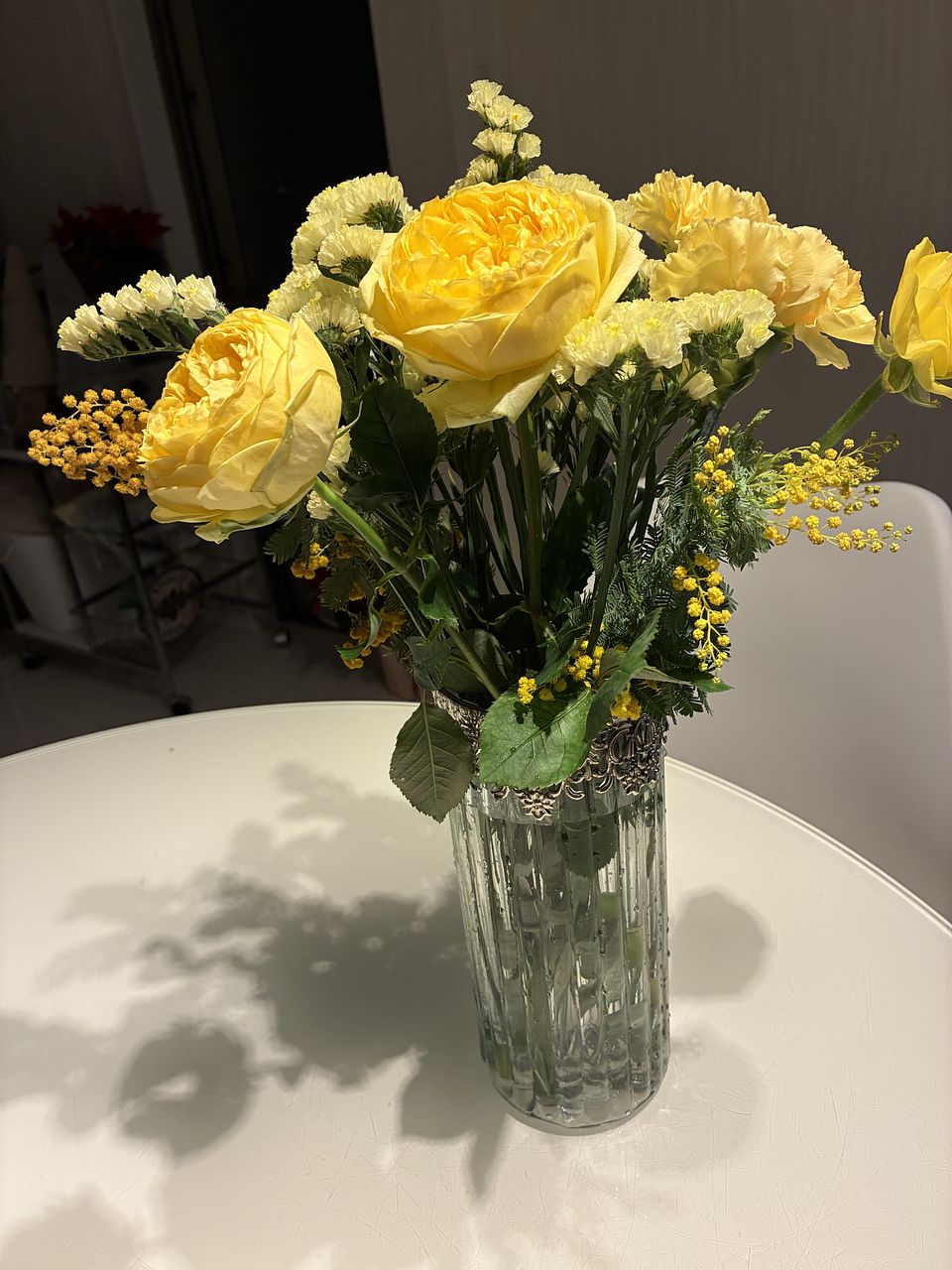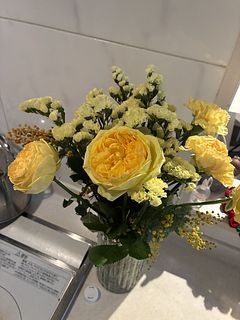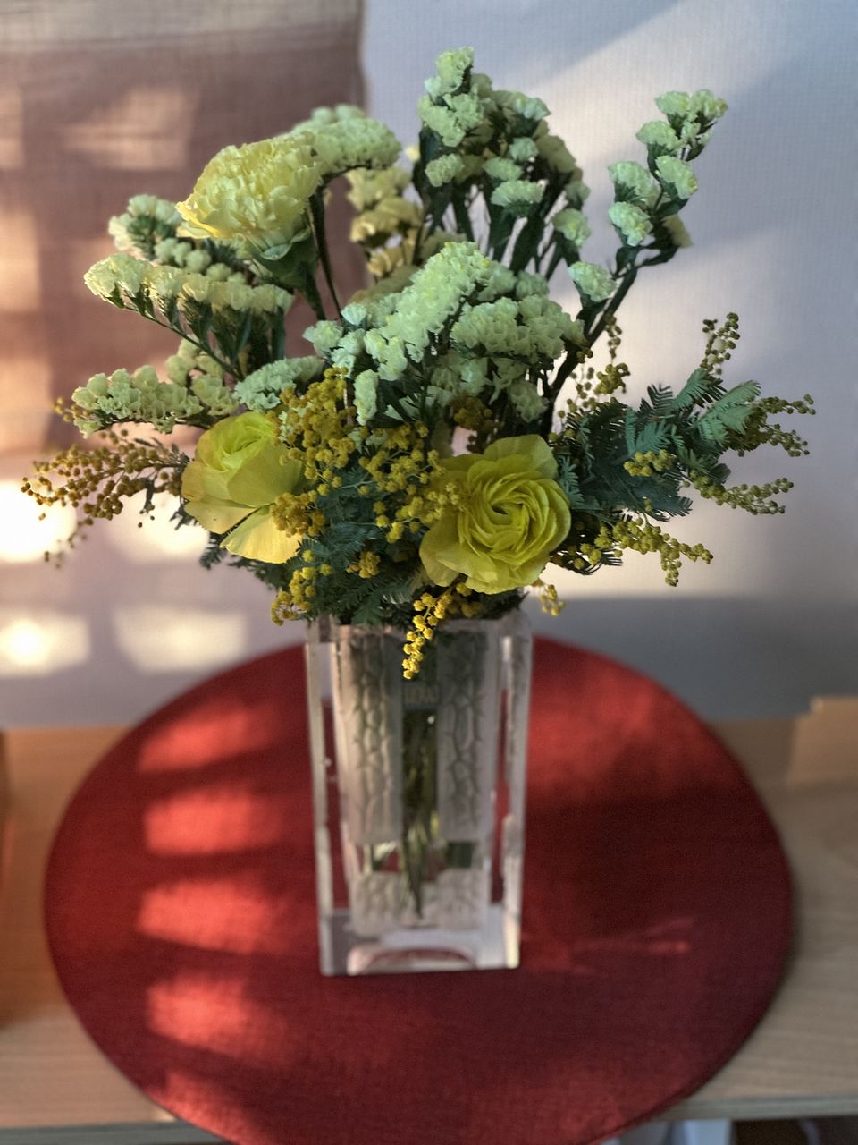お正月のおまかせブーケがさすがにヘタってきたので、今回はこちらにしてみました。 ボリュームたっぷり、黄色で気分も上がります! 次はひな祭りのピンク系にしようと思っています。