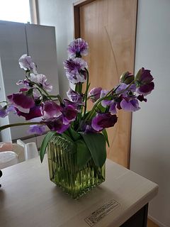 前回注文した 百合と一緒に入れてみました。霧吹きで水をかけるとスイトピーのいい香りがします、