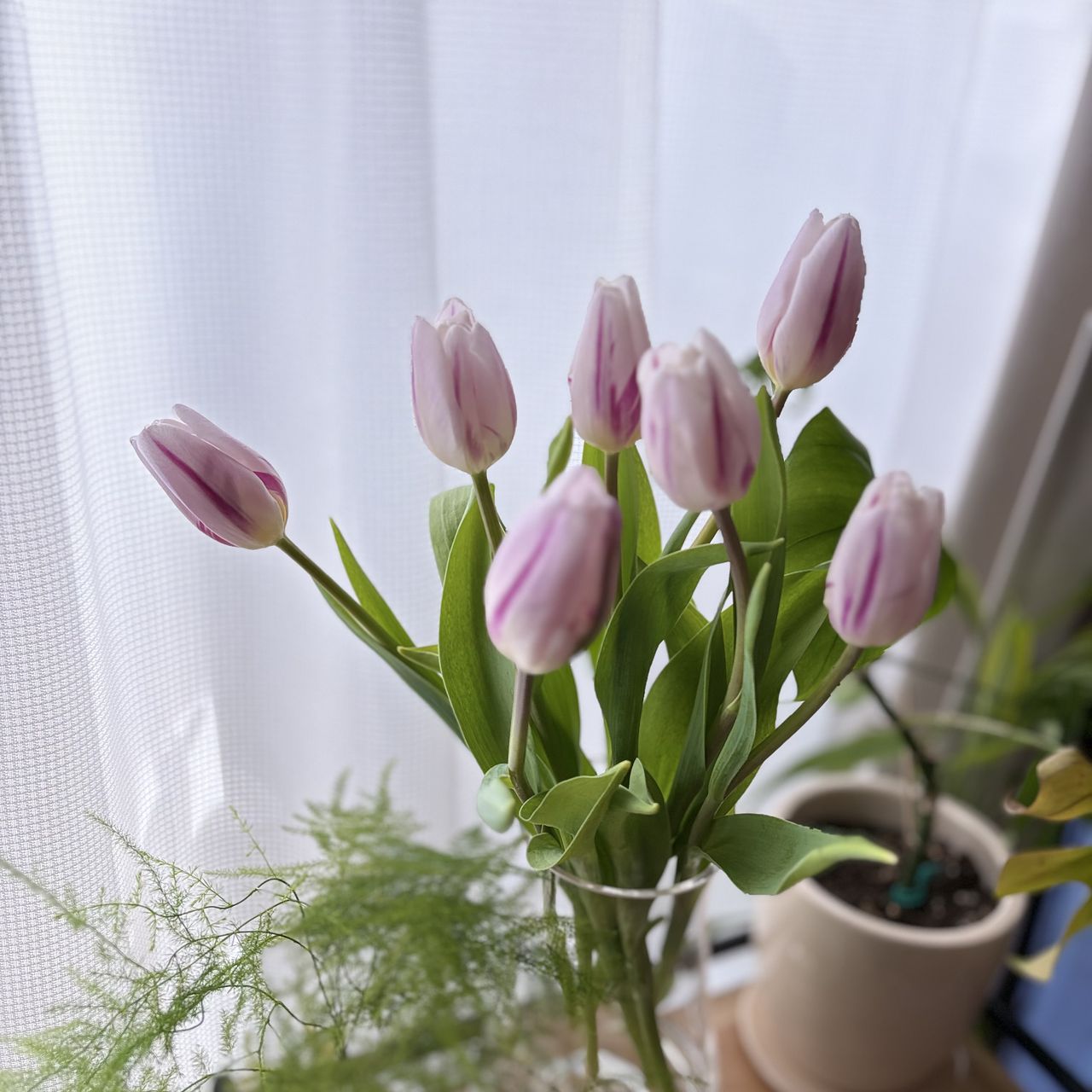 ラフに飾るだけでお部屋がおしゃれな印象に✨毎日伸びるチューリップをお楽しみください。