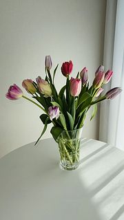 思ったより小ぶりかなと思いましたが飾ってみたら可愛いです。ここに黄色とかビタミンカラーのチューリップ追加しても可愛いかなと思います🧡💛