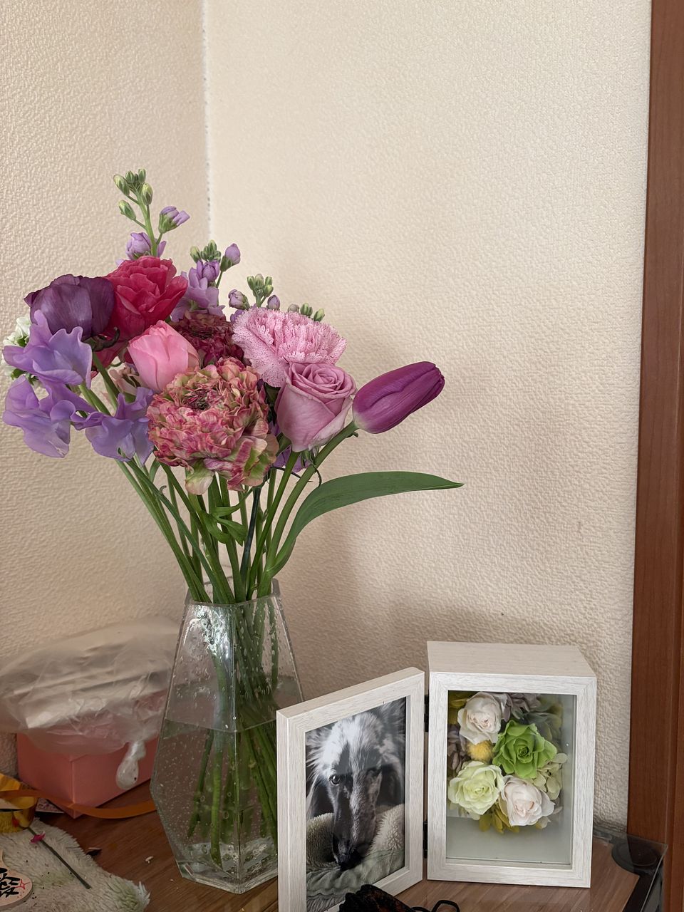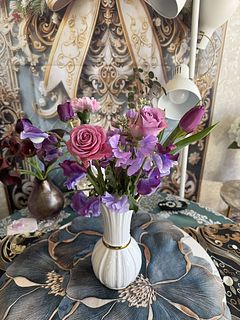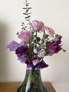 普段紫色はあまり興味は湧かないのですが、今回は2月誕生ということもあり、注文しました 想像以上にボリュームもあり、色合いも本当に可愛く優しく優雅にまとめてくれました! 本当に気に入ってます!家の中で何箇所かに分けての飾りにしました。玄関にももちろん飾ってあるのですが、朝出勤時と帰宅時にとても柔らかく心地良い香りで迎えてくれて幸せを感じておます。また注文かけます!