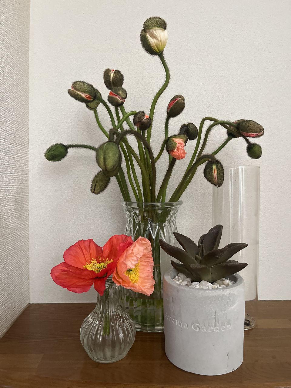 ポピーは俯きがち。紙に巻いて水揚げを行ってみて。