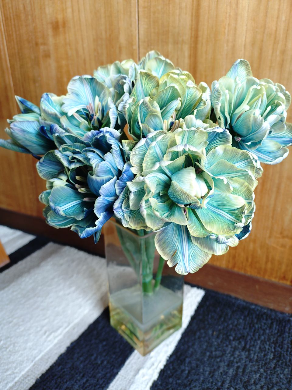 幻想的で神秘的で想像以上に素敵です💙 こんなチューリップは見たことないです🌷 お手入れ方法の通り、余分な葉を取り除き浅水で生けています🫶比較的寒い玄関に飾っているので長く楽しめそうです💙
