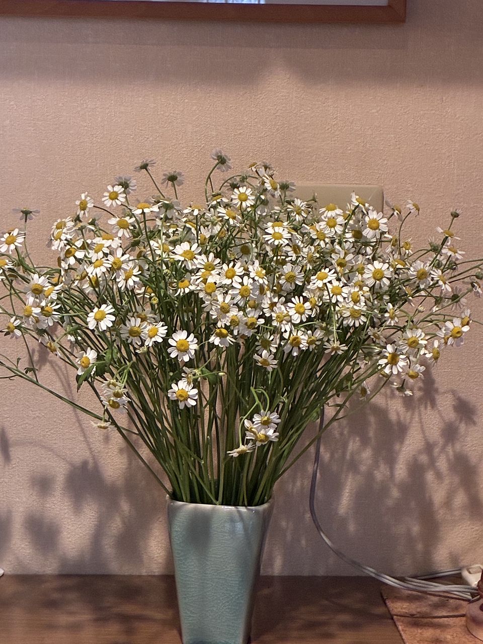 ふわふわゆれるマトリカリア「シングルペグモ」をたっぷりと束ねました。