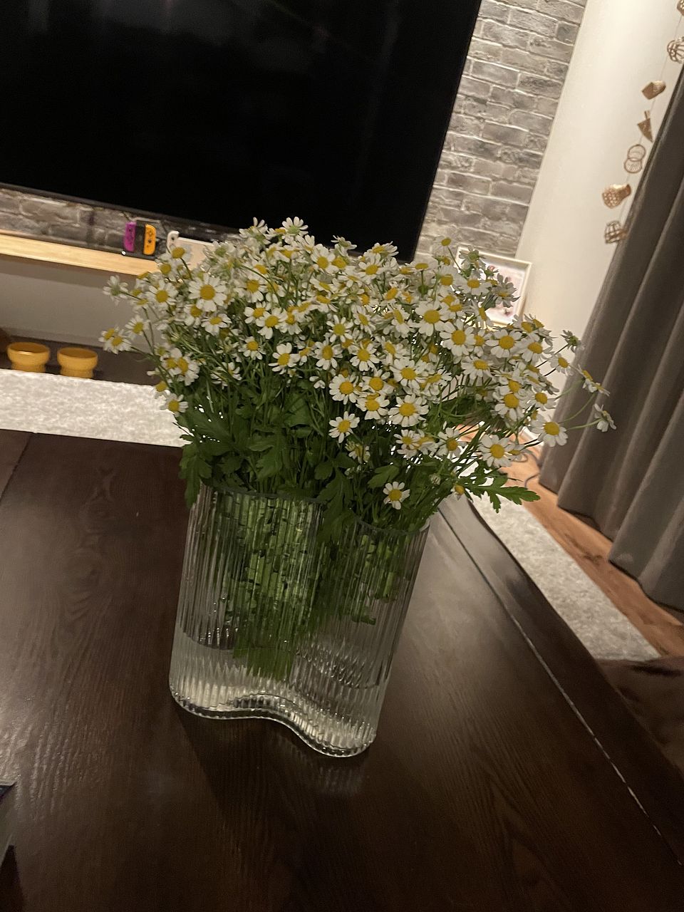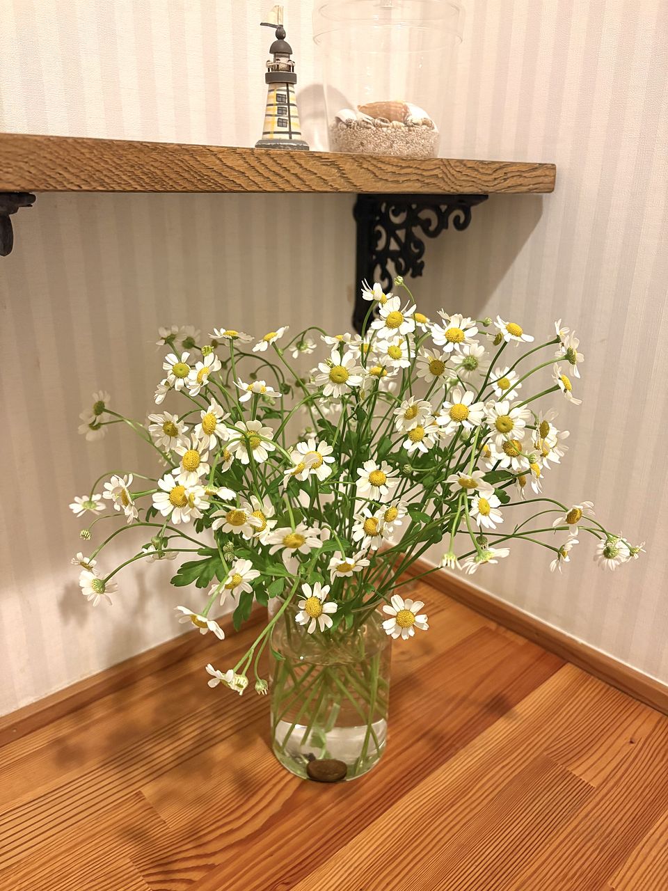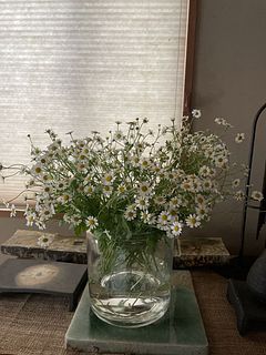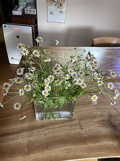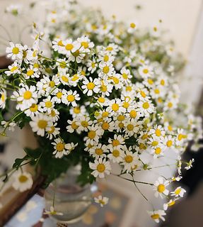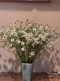 箱から出したら大量のマトリカリアが出て来ました。 1つの花瓶だけでは収まりきれず、あちこちに分けて飾っています。 とてもかわいいです。