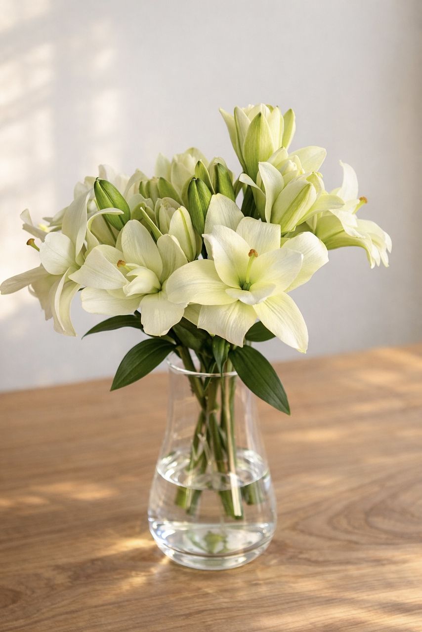 純白のスカシユリ(透百合)「ベルベデーレ」を産地直送で!長さ40cm前後でたっぷり5本お届けします。