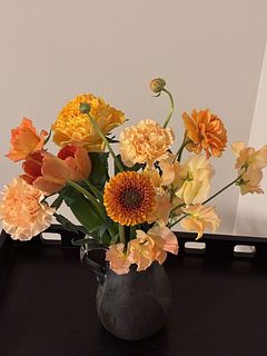 色、種類、量、組み合わせ、春らしくふんわりした雰囲気のブーケでとてもセンスが良くて、箱をあけた瞬間に気持ちが明るくなりました☺️