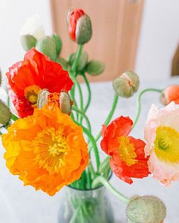 ポピーの季節がやってきました!おじぎをしたような蕾と、くしゃっとした花びらが愛らしいお花🌼