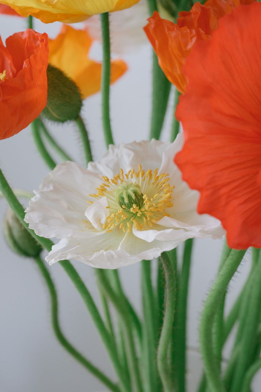 ポピーは俯きがち。紙に巻いて水揚げを行ってみて。