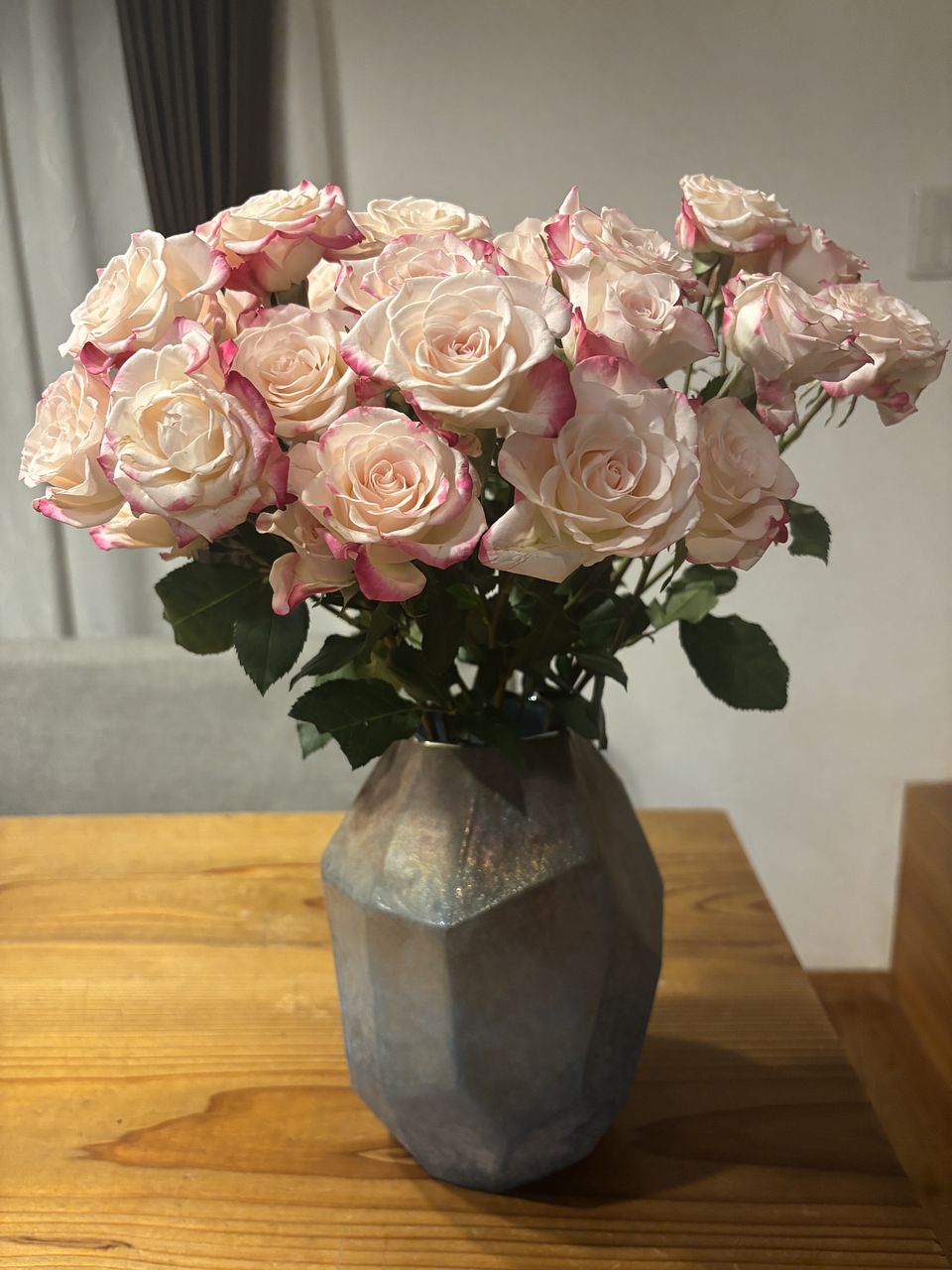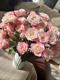 箱を開けた瞬間から思わず「可愛い〜!!」と声がもれてしまうほど、とにかく可愛らしい色味です!! ですが、しっかり水揚げもしたのですが、うちは3日目ぐらいから段々元気が無くなり、5日目には花びらが茶色くなってきてしまったので、あまり長持ちしませんでした🥲