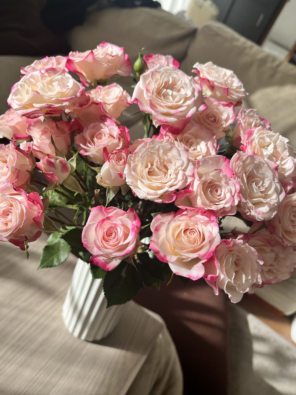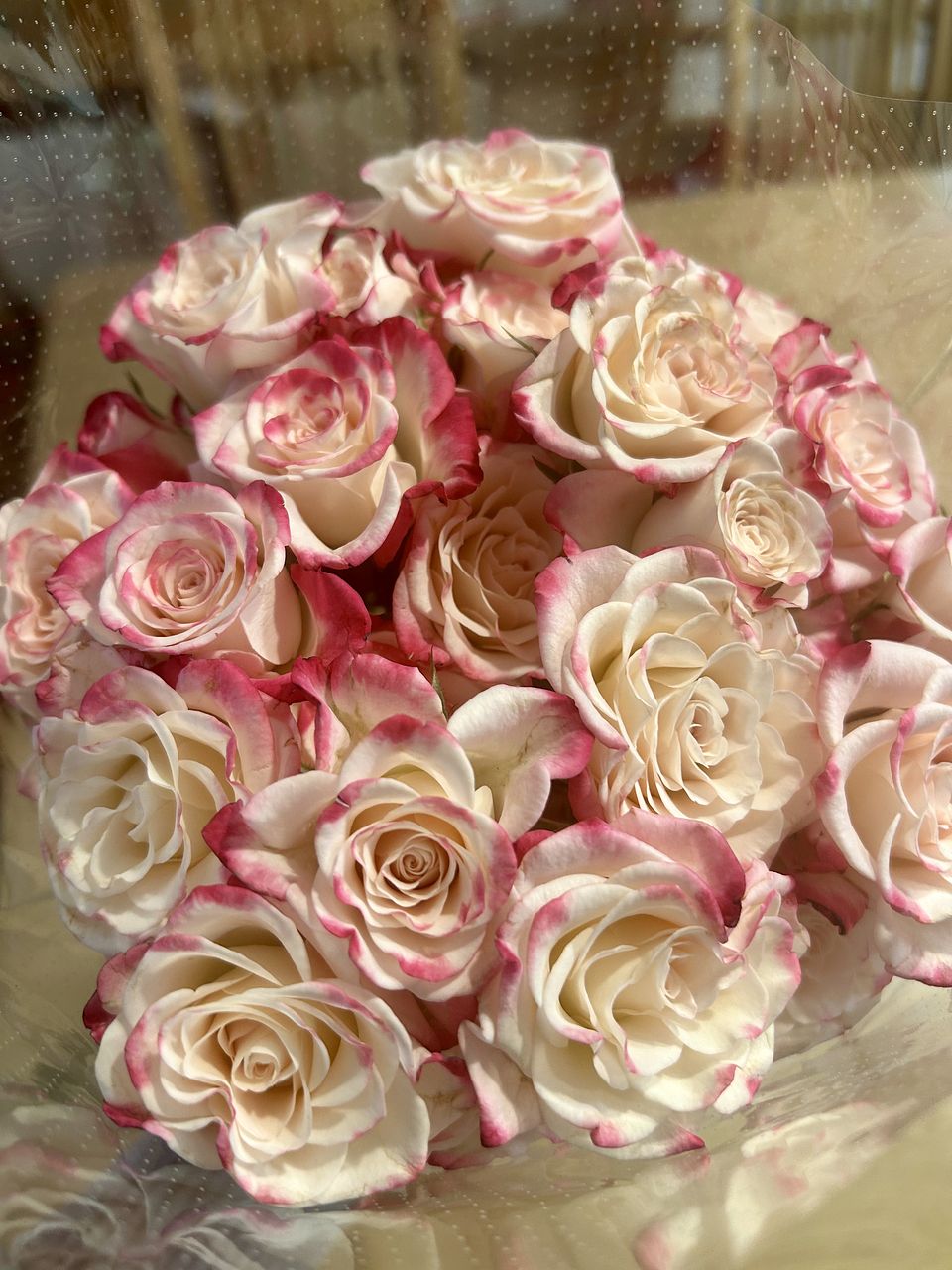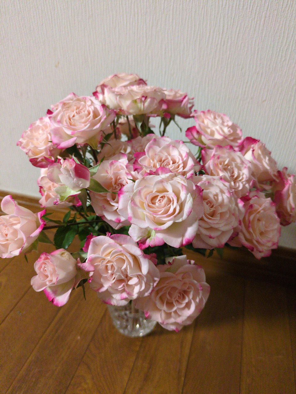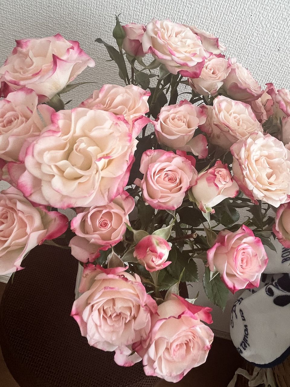 ボリュームたっぷりの可愛い薔薇が届きました🌹 ストロベリーミルクの名前通りの色合いですね 長持ちするとイイな〜