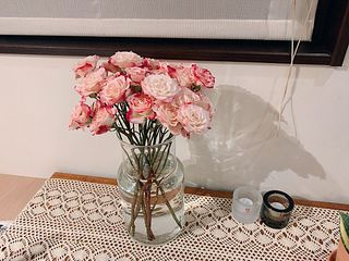 最初に生けたとき、うまくボリューム感が出せない…と思いましたが、あたたかい部屋に置いたらいい感じに花が開いてきて、豪華になりました。かわいらしいし、良い香りがします。