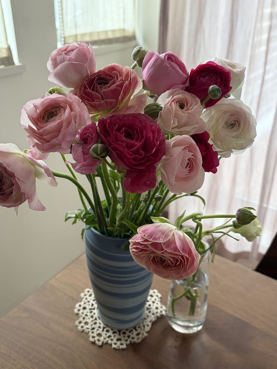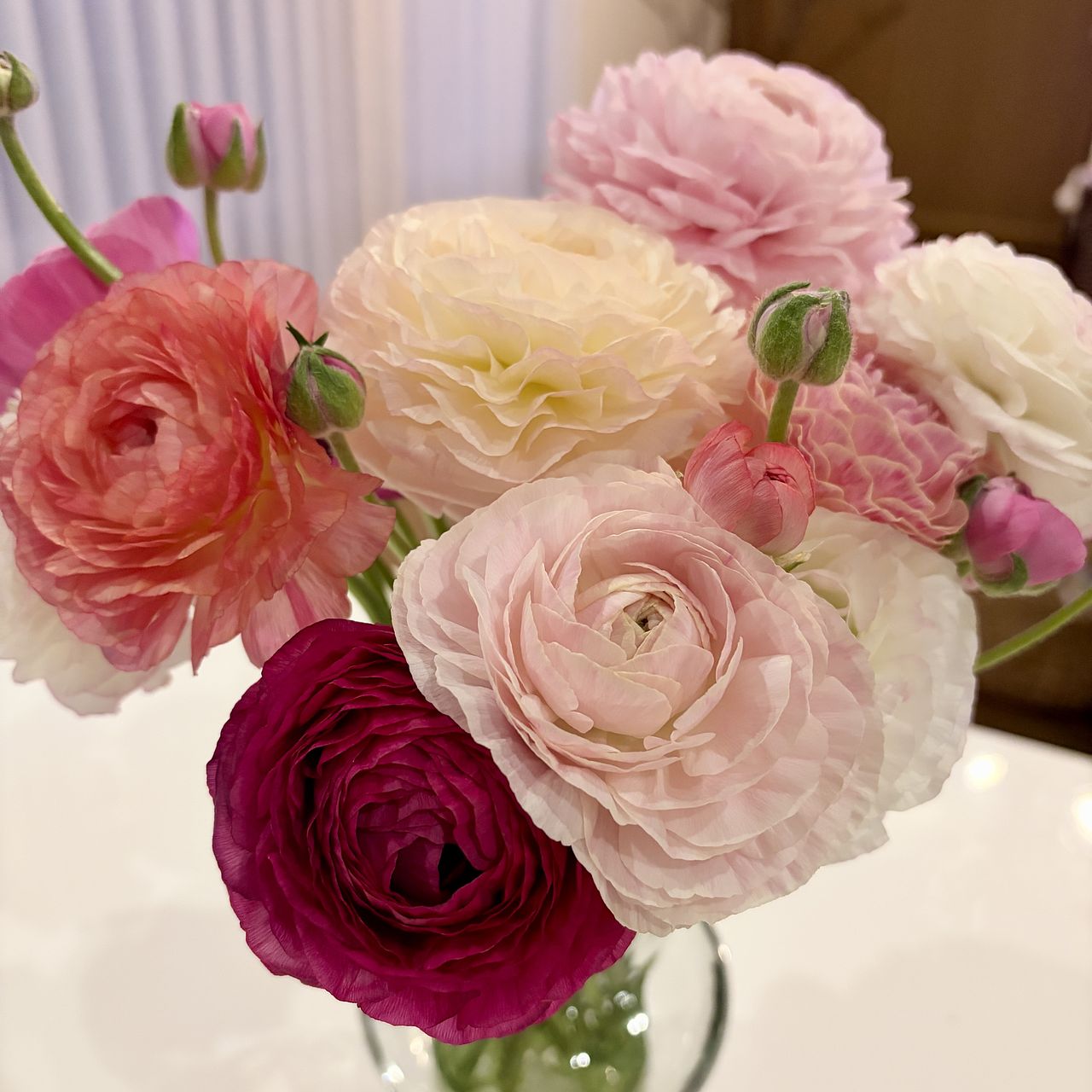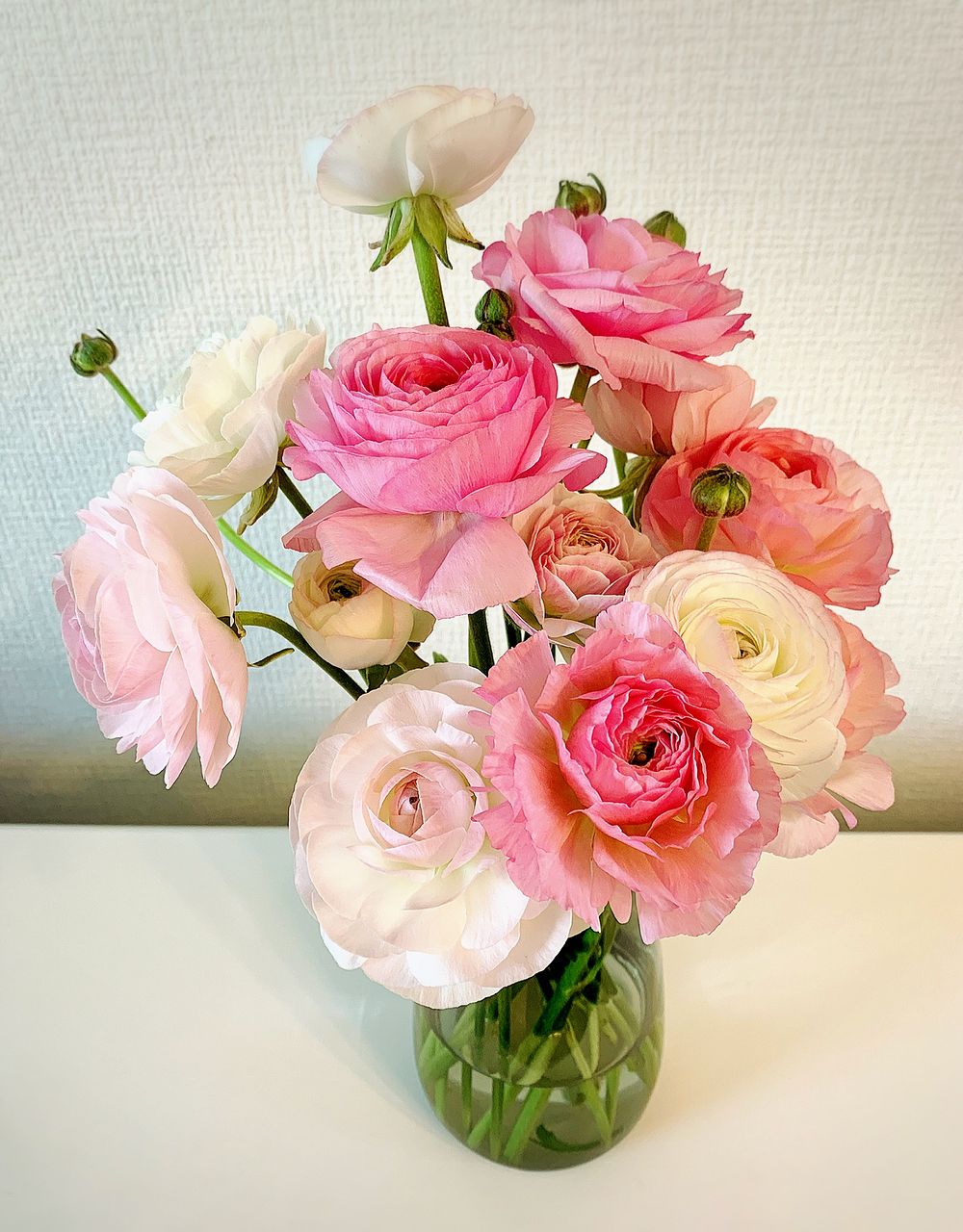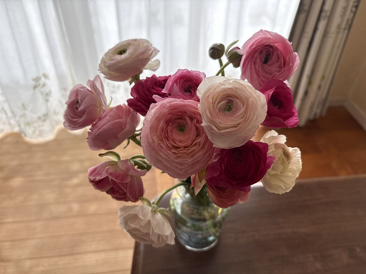 まんまるで新鮮な たくさんのラナンキュラスに癒されてます。 長く咲いてくれますように。