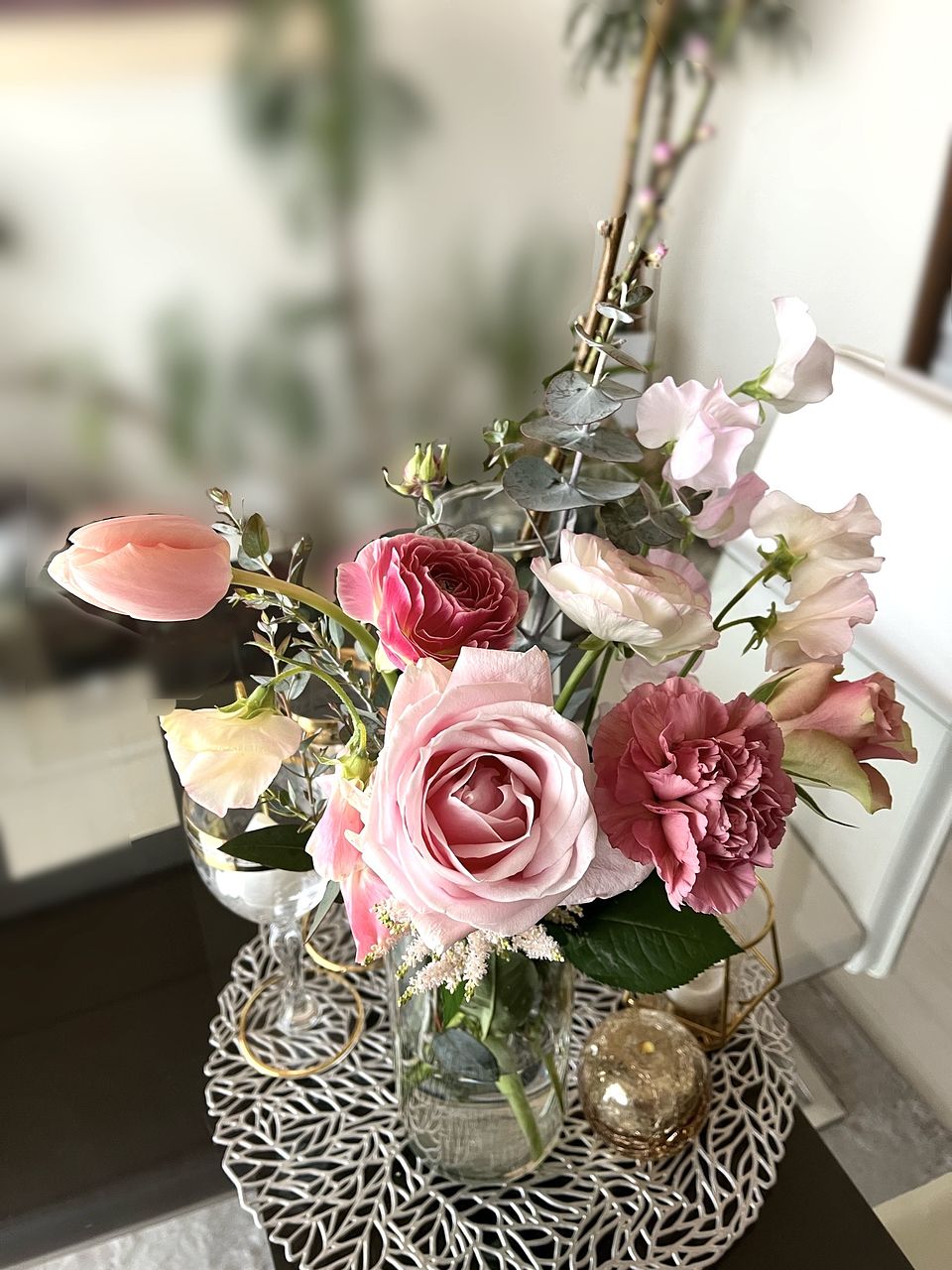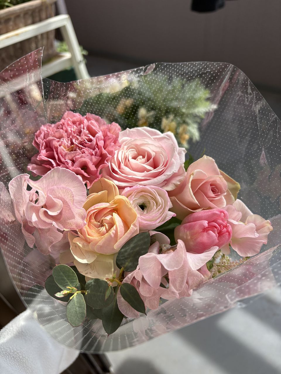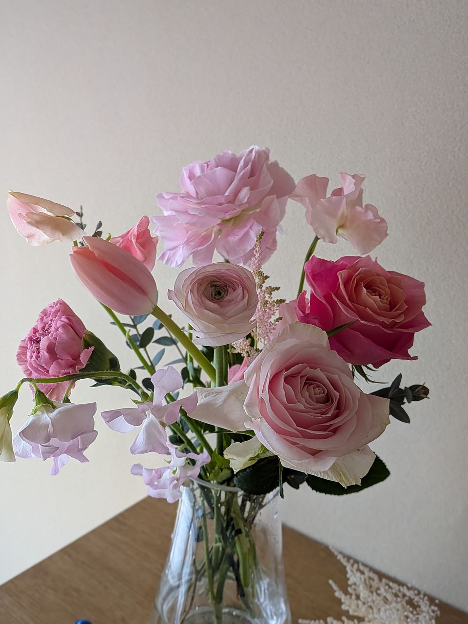 ボリュームもあって、いろんな淡いトーンのピンクのお花が入ってて、ほんとに可愛いブーケでした💐 お部屋に春が来ました🩷