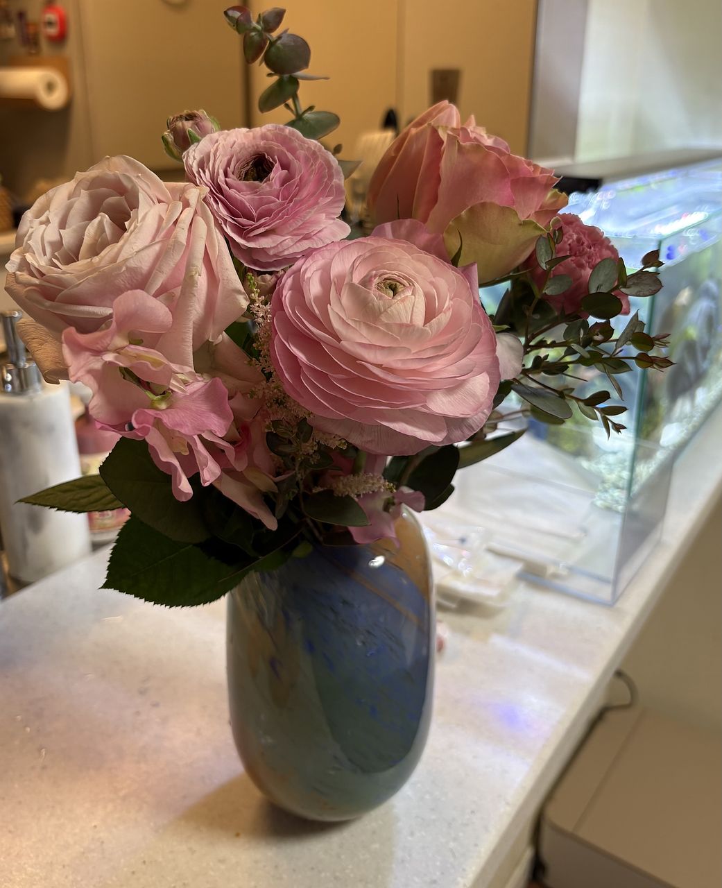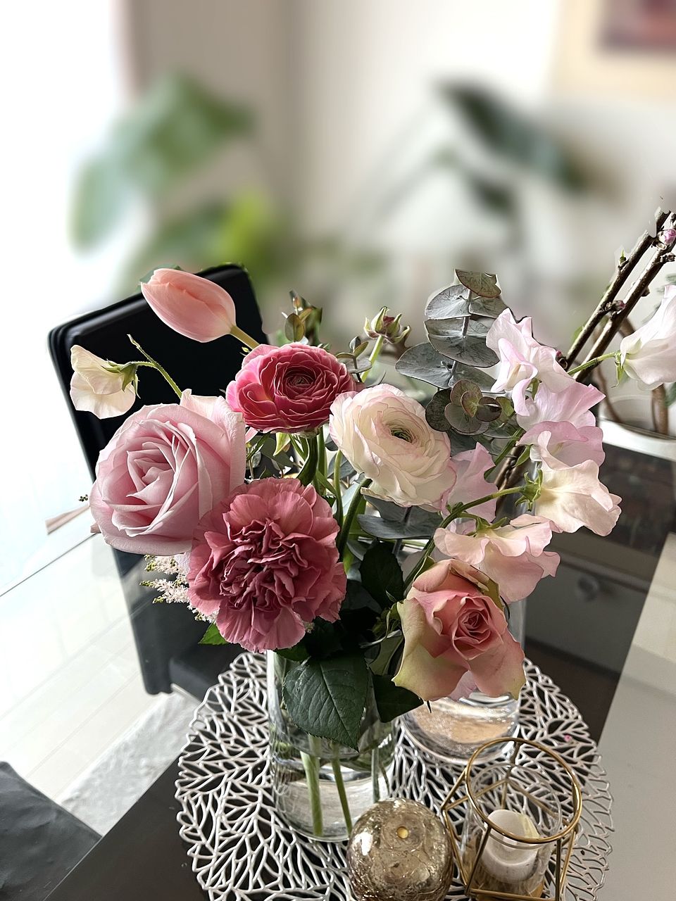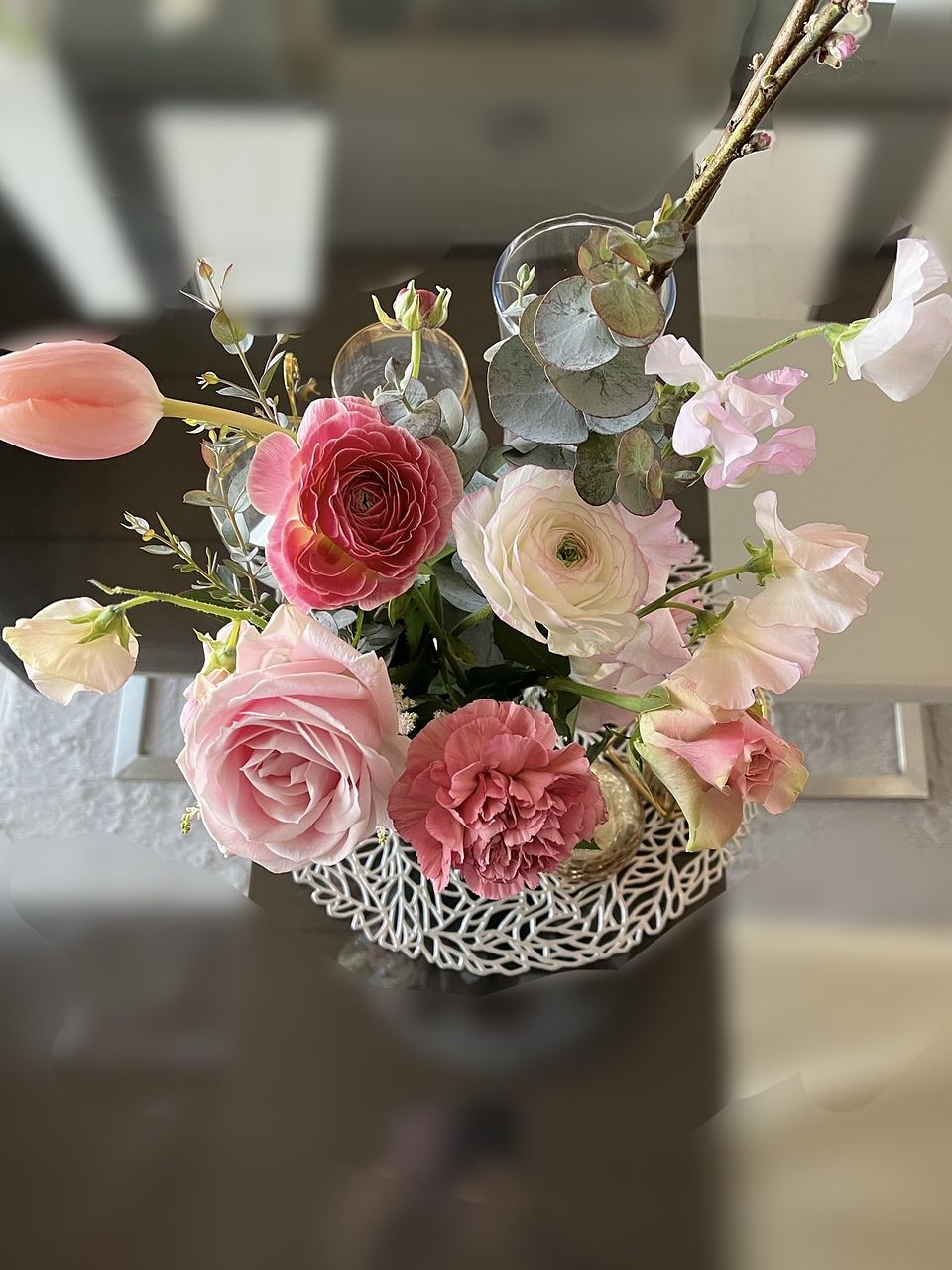 ボリュームもあって、いろんな淡いトーンのピンクのお花が入ってて、ほんとに可愛いブーケでした💐 お部屋に春が来ました🩷
