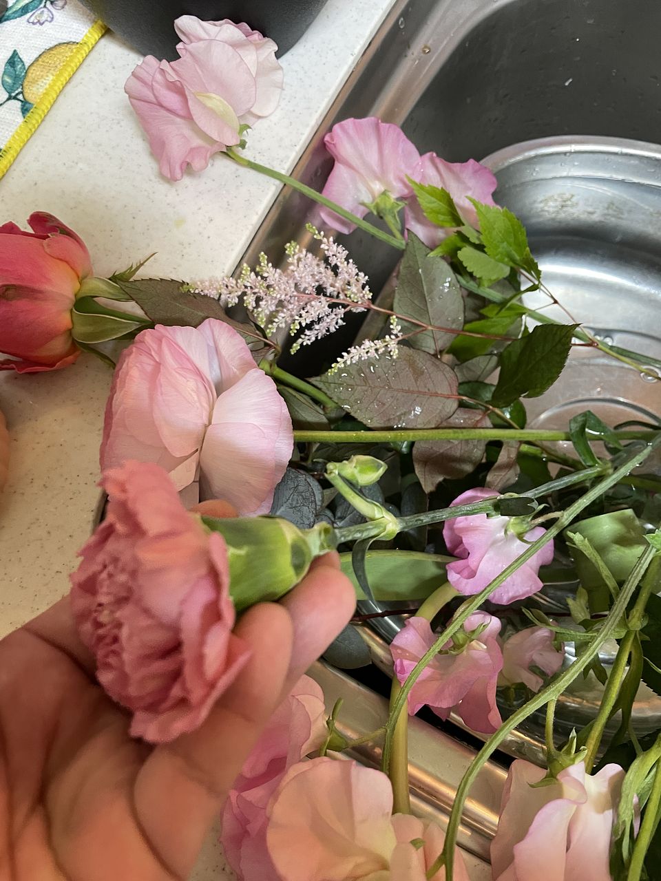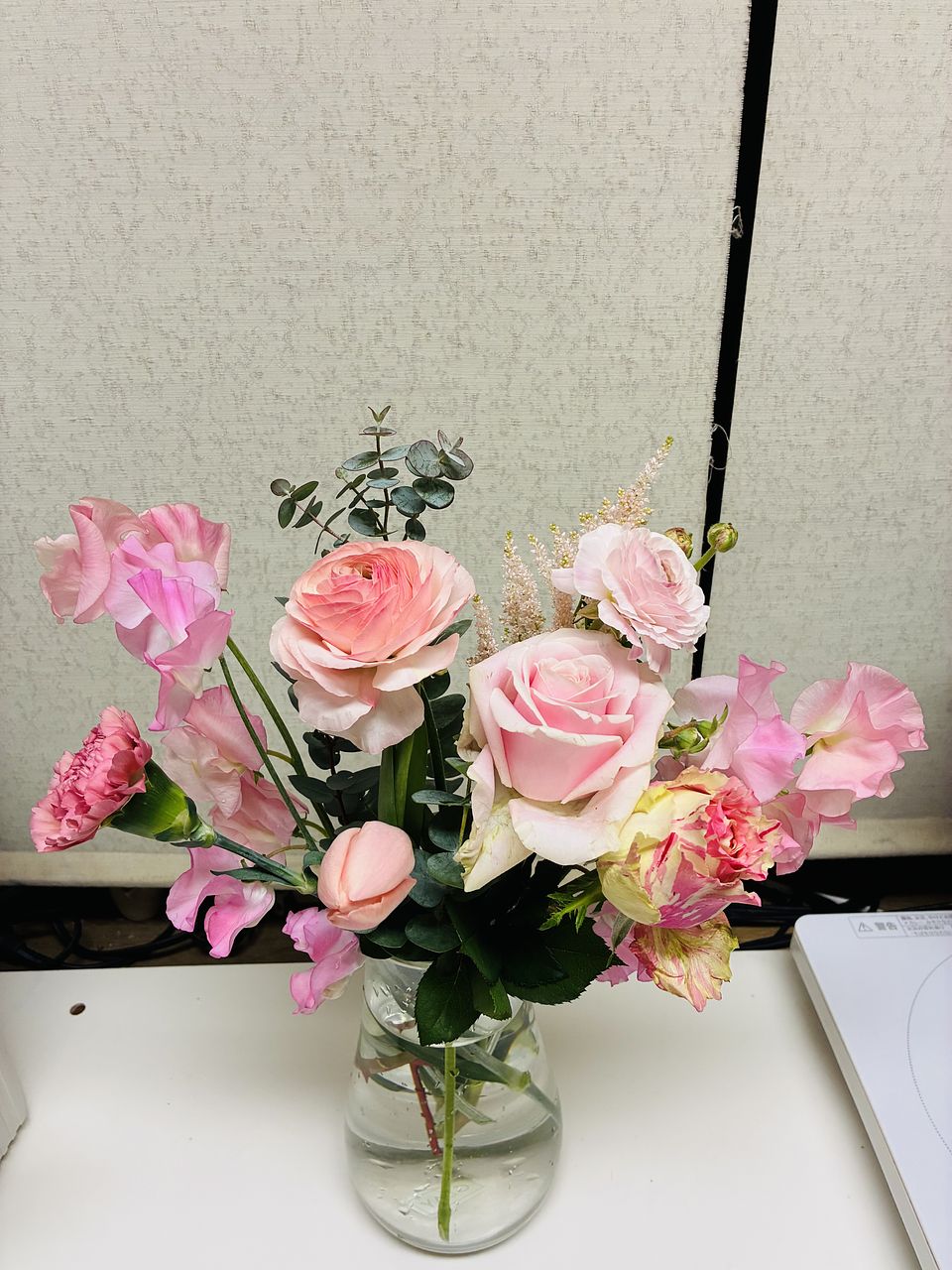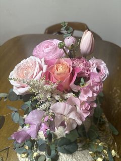 やさしいピンクのグラデーションとバラやスイトピーの良い香りで、とても幸せな気持ちになりました!