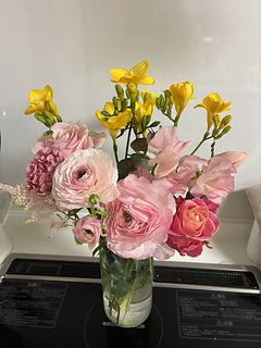 春のお花満載で素敵な花束でした、家のラナンキュラスも終わりなので生け替えました、ありがとうございました。