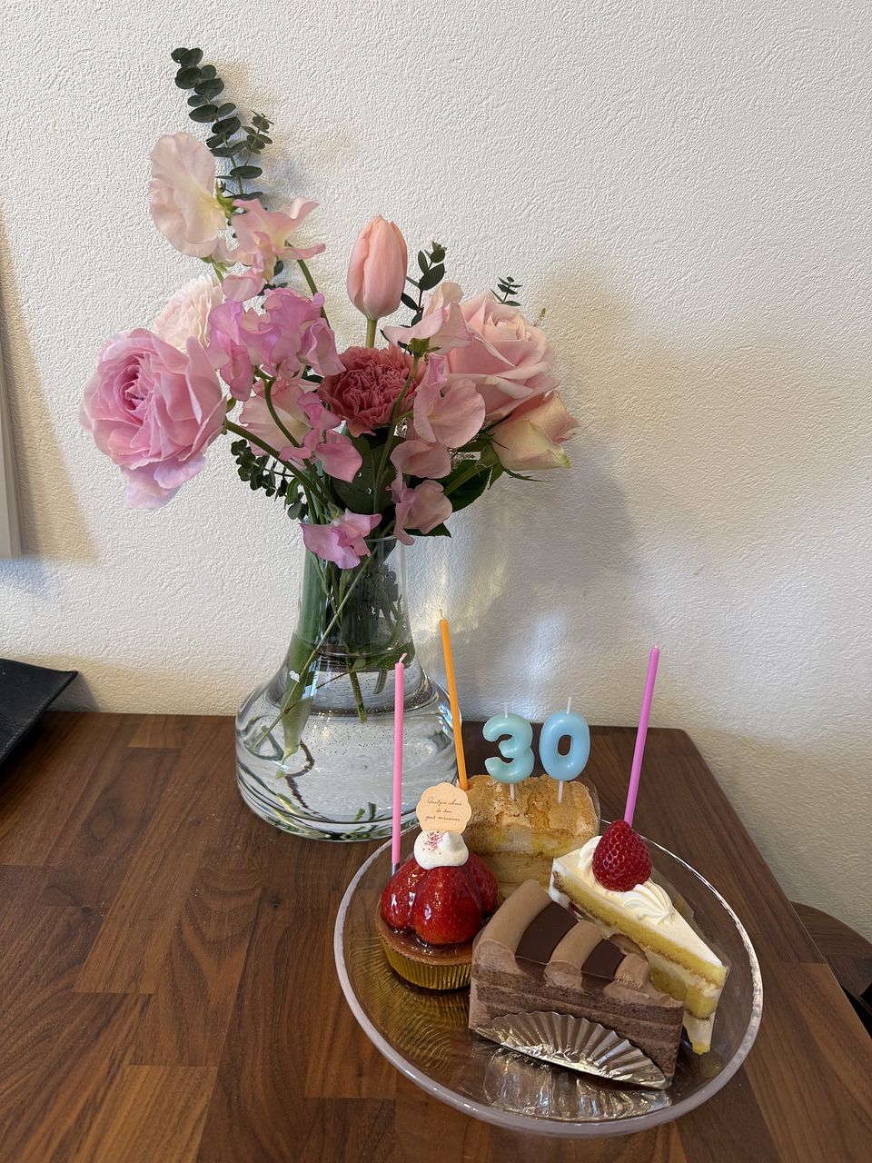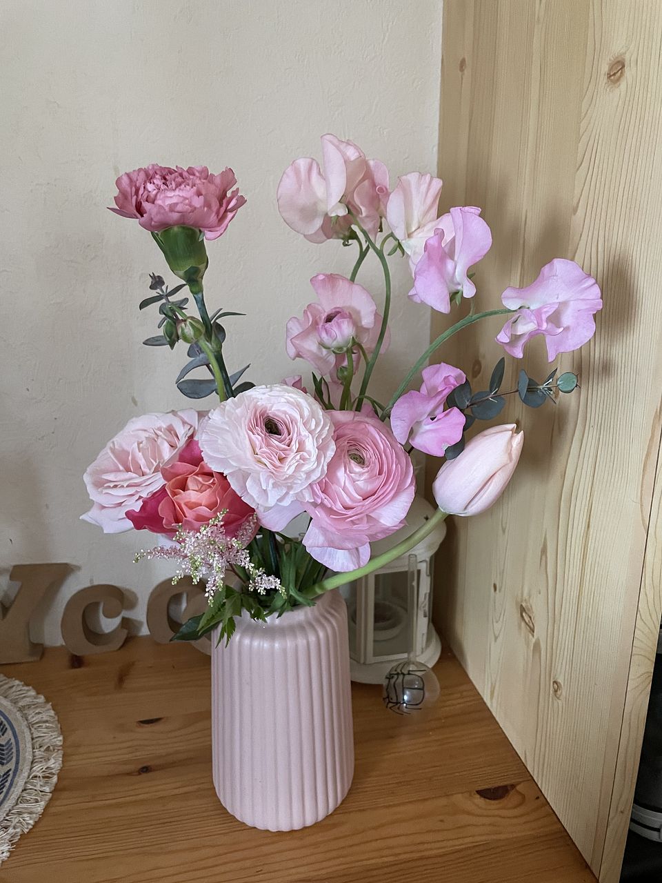 お誕生日のお花に🌷とにかく可愛くて癒されます🥰花瓶もこちらで以前購入したものです。