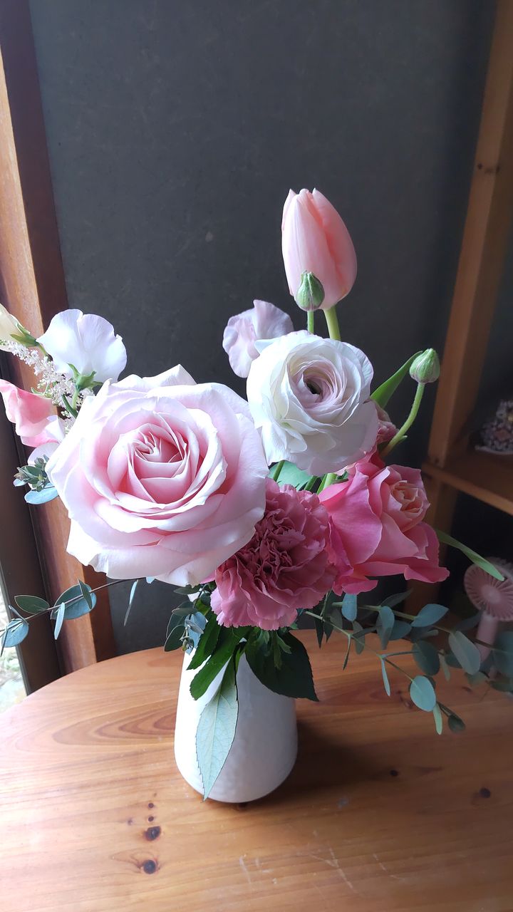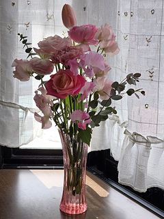 可愛くて二つ注文しました。先日届いたフリージアとも相性よく香りもよく色んなピンクの濃淡に癒される金曜日です。いつもありがとうございます