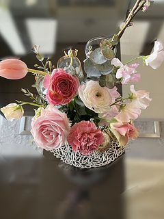 柔らかいピンクの色合いのお花が届き、一気に春めいて華やいだ気分になりました。素敵です