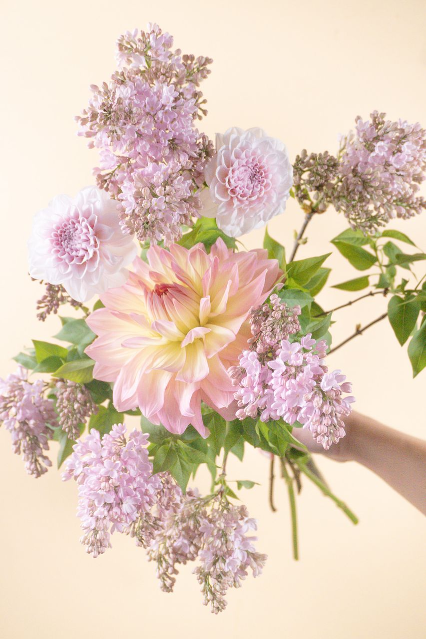 ミルクを溶かしたようなやさしいベージュと、ほんのり深みのあるココア色を重ね、あたたかみのある一束に仕上げました🫶